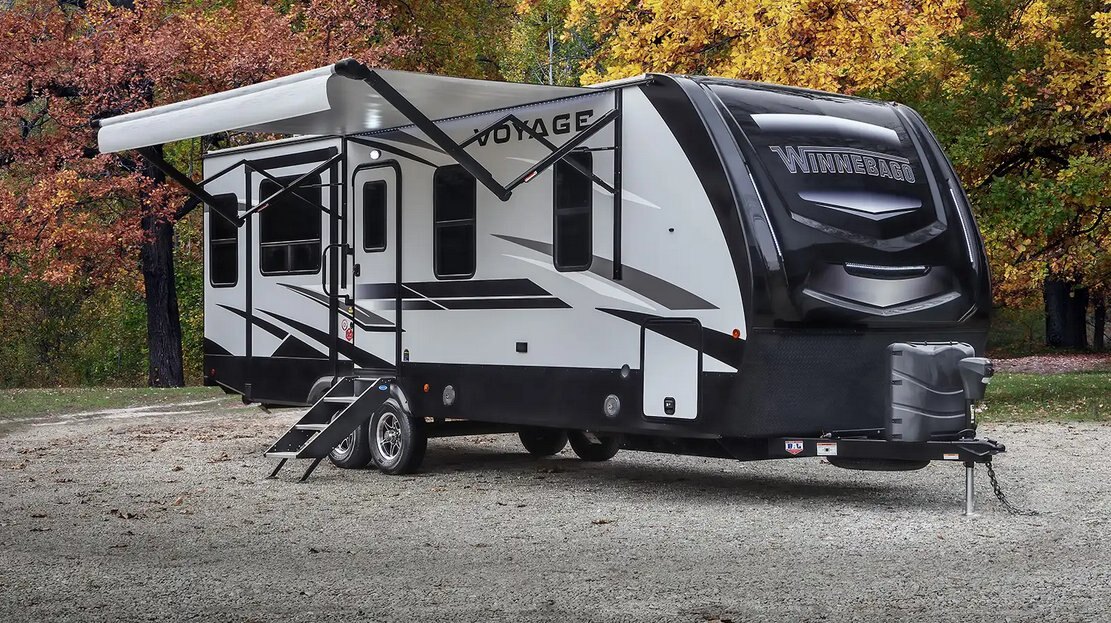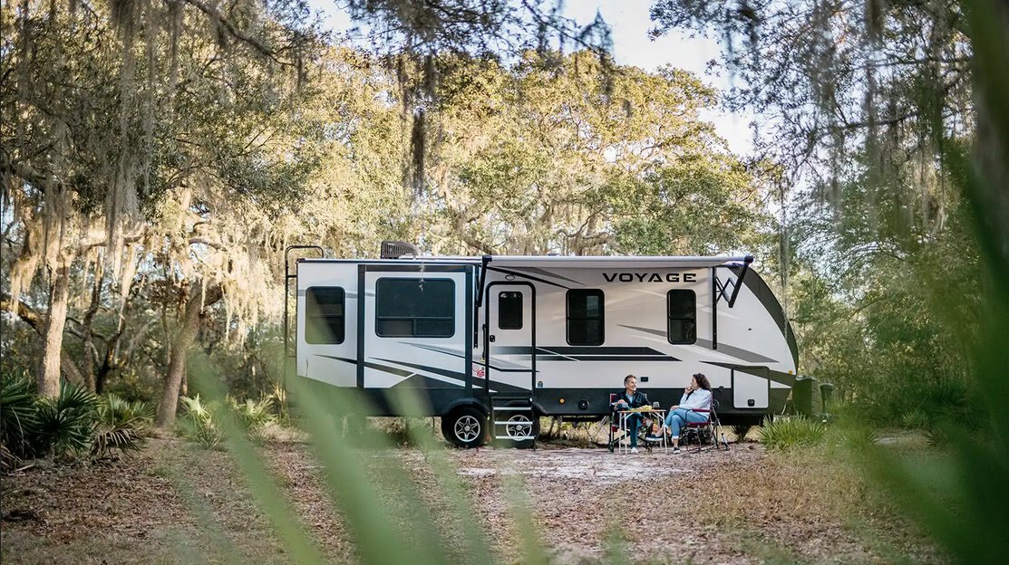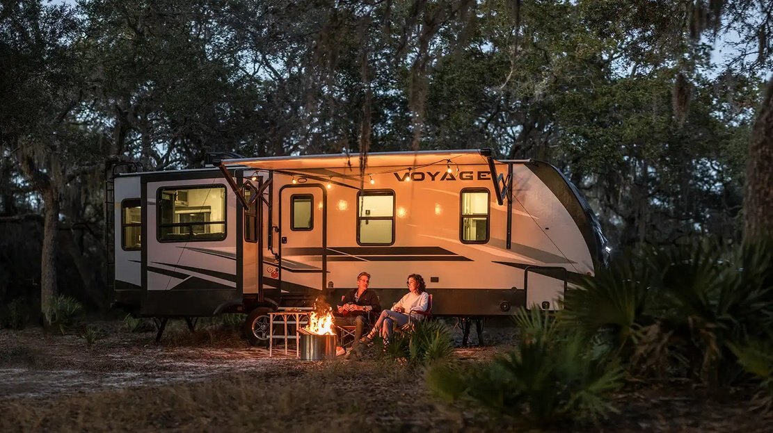 Voyage The Voyage is the escape you've been waiting for. This Travel Trailer is built for those who want to explore, from sea to shining sea, without leaving comfort and connectivity at home. The Voyage has unmatched storage, floorplans that fit any family, and a kitchen meant to entertain. Your next Voyage begins here. |