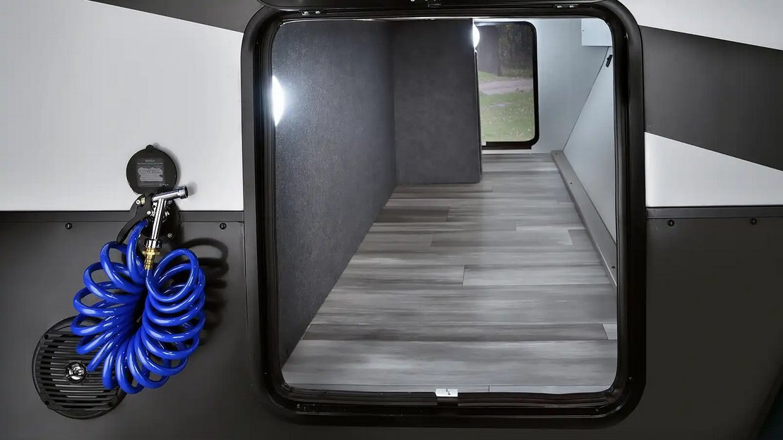 The Voyage maximizes storage potential with a drop frame pass-through storage design and dedicated pantries. |