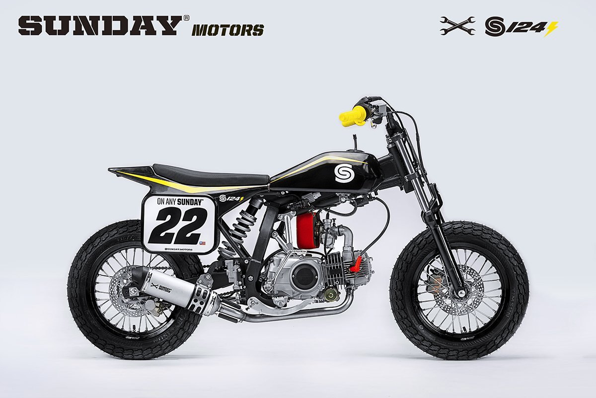 -125CC ELECTRIC START ENGINE WITH SEMI AUTO CLUTCH -TT 200MM FRONT DISC BRAKE ASSEMBLY -FRONT ALUMINUM RIM 2.50 X 14 -REAR ALUMINUM RIM 3.00 X 14 -FLAT TRACK FRONT AND REAR TIRE 130/70-14 -NIBBI® CARBURETOR -ALUMINUM BRAKE PEDAL -INOX FOOTPEGS WITH LEFT RUBBER PEG COVER -FACTORY MUFFLER -BOTTOM MOUNT REAR DISC BRAKE CALIPER -200MM REAR DISC BRAKE ASSEMBLY -330MM 1000 LBS SHOCK ABSORBER