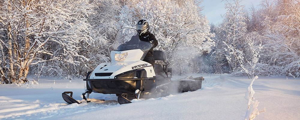 The Yamaha VK540 is legendary for its durability, reliability and dauntless work ethic. A simple, 2-stroke engine with heated carburetor and both manual and electric starting is assured to get you going no matter how far the mercury drops. A 20 inch track with aggressive 1.5 inch lugs provides plenty of traction and the hi/lo range transmission with reverse offers versatility. The VK540 has been the top choice of riders in remote areas for a very good reason. It's a Yamaha, dependable, pure and simple.