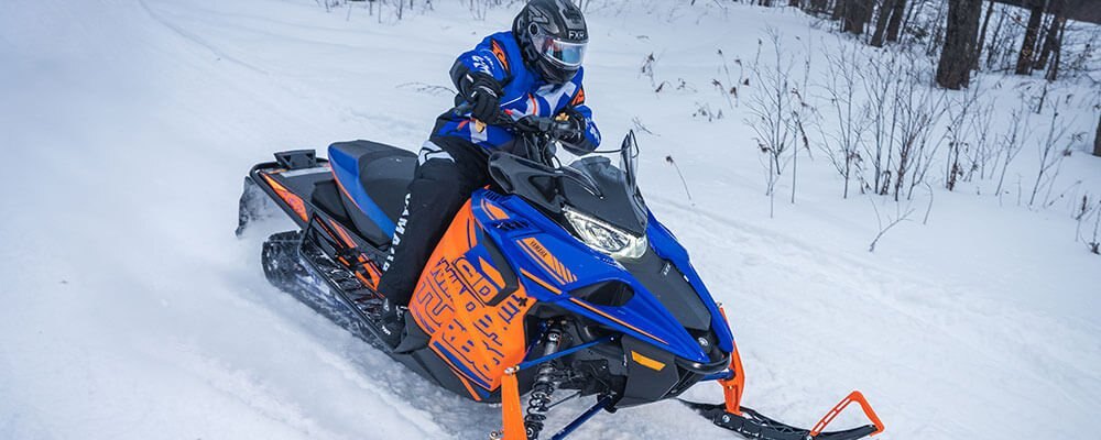 As with all Yamaha 4-stroke powered snowmobiles, there is no need to pull on a string to bring the engine to life. Easy electric starting is achieved through a simple handlebar mounted, glove friendly, push-button switch. |