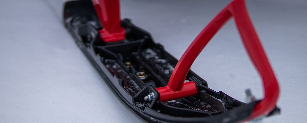 The lightweight Yamaha Mountain ski delivers everything you want in a deep snow ski. Its wide footprint enhances flotation and actively lifts the sled's nose up on plane in deep powder. Traction lugs on the top of the ski give you a sure foothold when the situation gets really gnarly. The wide and deep keel design deliver light steering effort yet confident and predictable handling on hard pack and in fresh fluff. -