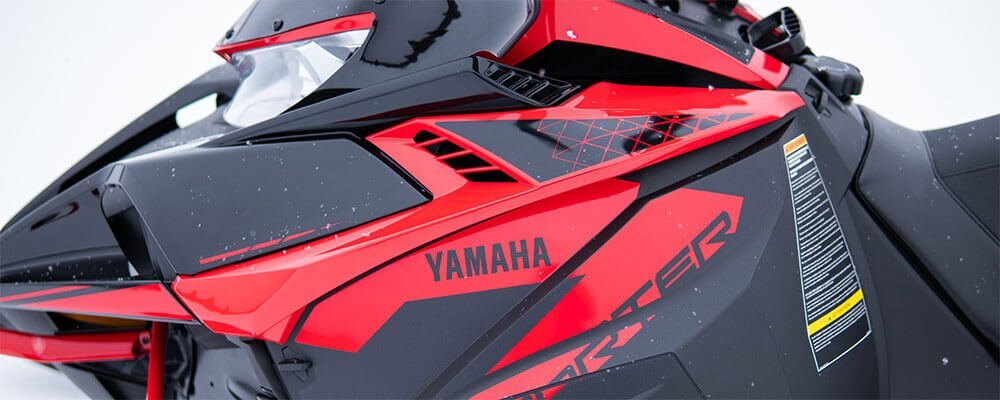 The Transporter pulls styling cues from Yamahas line of sport sleds. The fresh aerodynamic lines help improve airflow around the engine and clutch bay. Body curves are specially designed to deflect snow away from the rider when cruising through deep snow. |