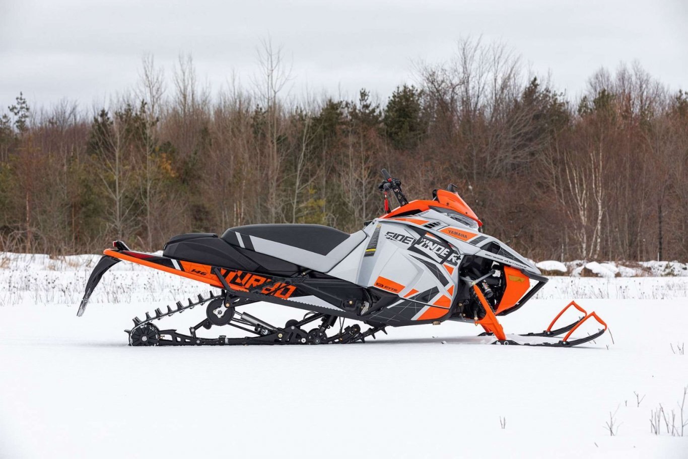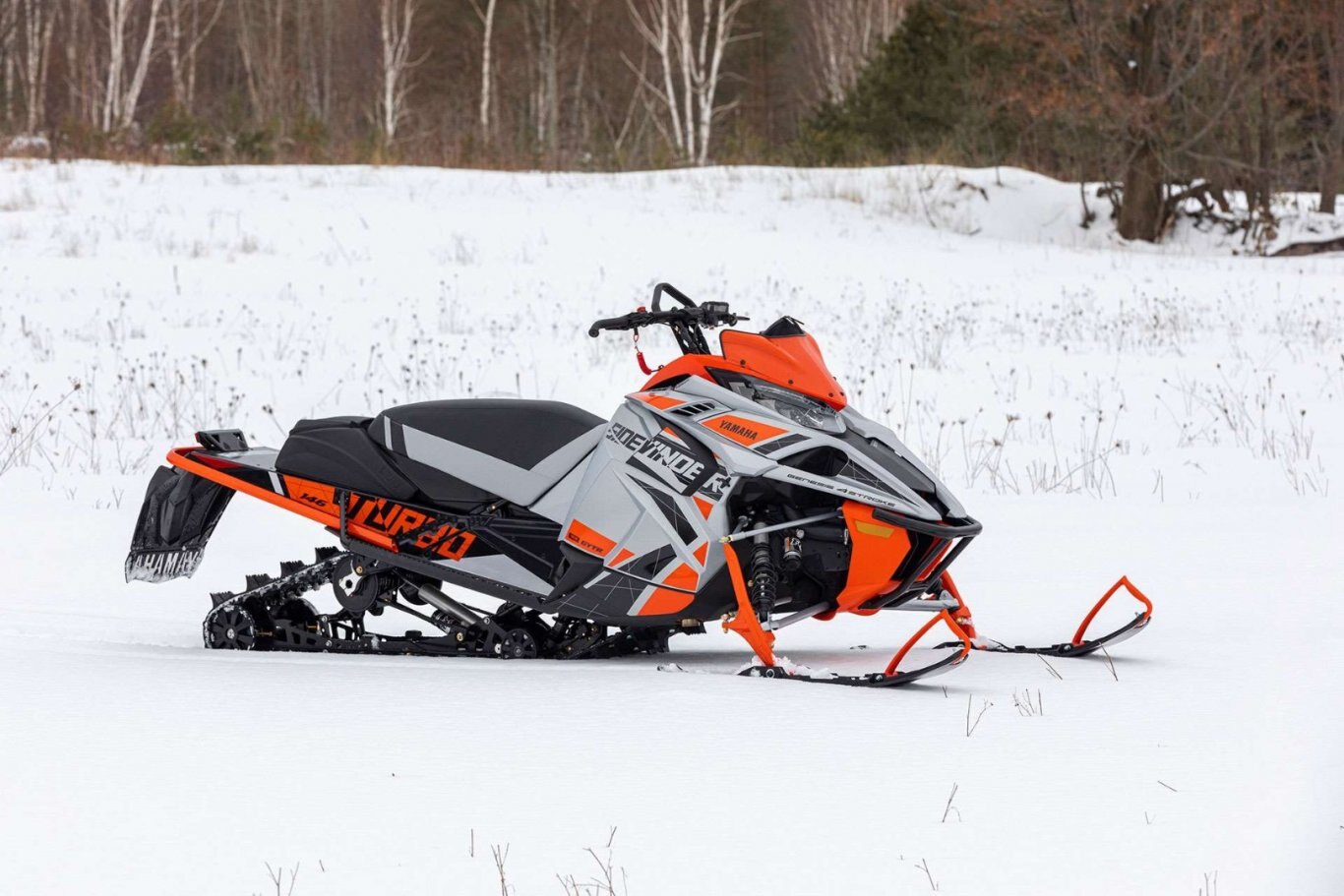 The Sidewinder X-TX SE is all about getting off-trail with its quick transfer, VersAttak 146 rear suspension and 2.00" deep-lug Camso track. The front end sports a narrower 40" ski stance held up by wide Yamaha Mountain skis. The tunnel and steering system is based on the SR-M Mountain chassis complemented with a light weight mountain seat, tapered foot boards and Stealth controls. Top-shelf Fox® Zero QS3 shocks are found up front to accommodate a wide range of terrain and riding styles. The Genesis Turbo adds a power packed punch of fun to any outing. |