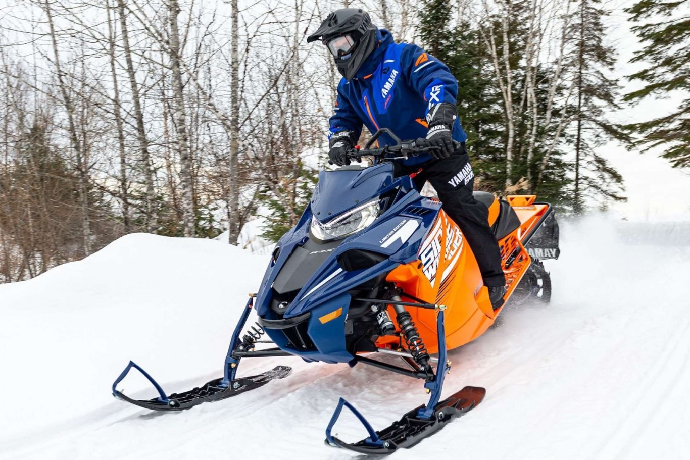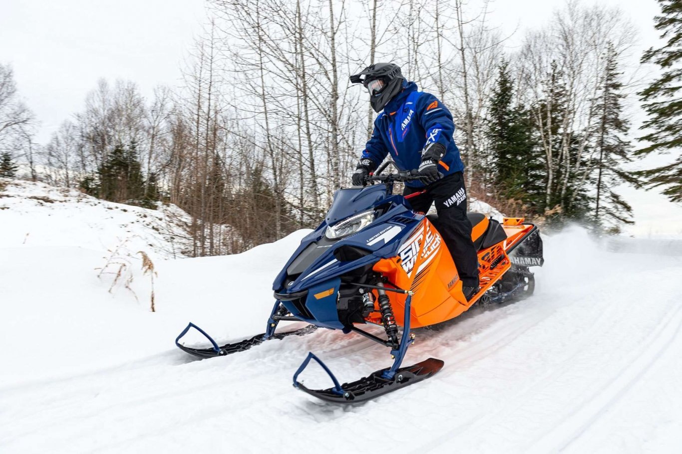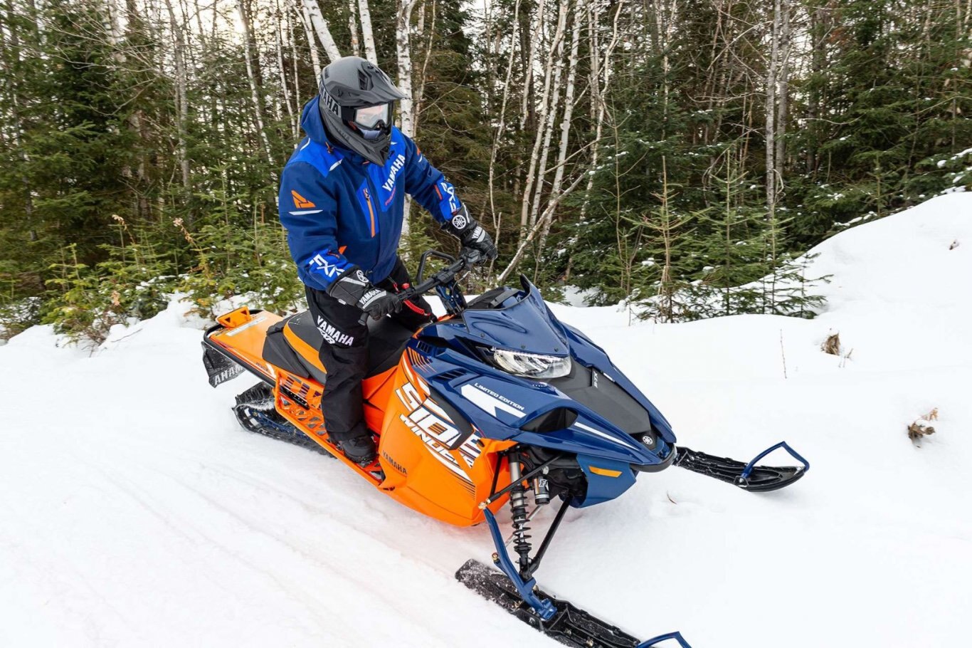 When making first tracks in the fresh back country takes precedent, then the Sidewinder B-TX LE is tailored to suit your style. The 153" Power Claw track with sturdy 2.25" lugs, wide Yamaha Mountain skis and a 40" stance is the perfect combo for getting through the deep stuff. Premium Fox® Zero QS3 shocks provide easy. And the 'Stealth' brake cylinder and lever combo take care of slowing down the mighty turbo with more authority than ever. |