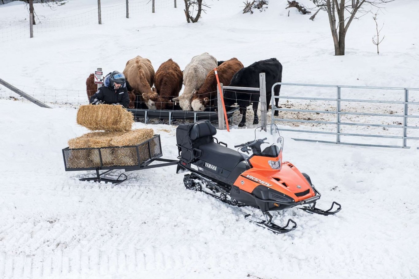- A proven 540 2-stroke twin engine powers this ultra dependable utility snowmobile. Based on the legendary 540, Yamaha engineers improved midrange torque and reduced fuel consumption by nearly 25 percent with this newest version. The improved efficiency meets current emissions standards with even more reliability than its predecessor.