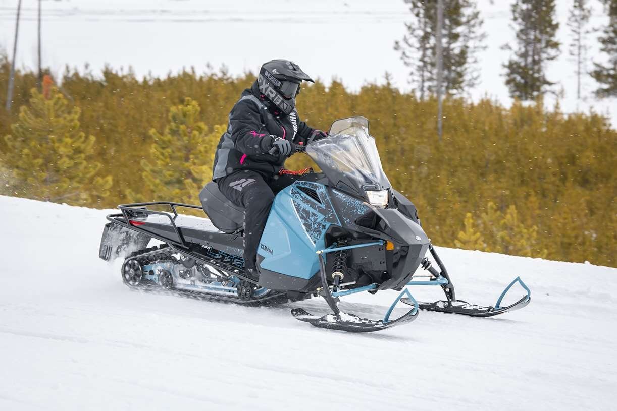 The Yamaha Transporter Lite is the affordable and manoeuvrable two-stroke utility snowmobile you can count on. Mountain skis, 146 Camso Cobra track with 1.6-inch lug, rugged rear rack and a compact fuel-injected, electric start 397cc two-stroke make the Transporter Lite as convenient as it is practical. The smaller size and lightweight of the Transporter Lite make it ideal for getting into tight places deep off the trail.