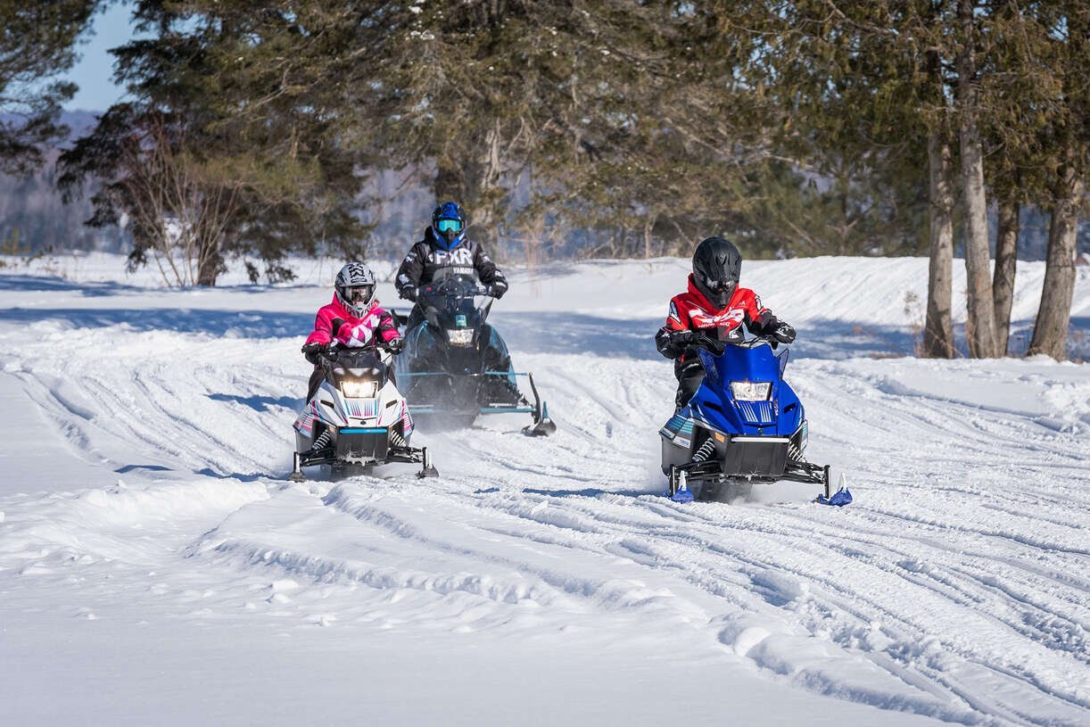 The Snoscoot is an easy to ride electric start, four-stroke, 200 class snowmobile for younger, smaller or inexperienced riders. The Yamaha engine creates enough power to keep the smiles and excitement lasting for years while staying safe and affordable. Even adults will have a ton of fun on the Snoscoot!