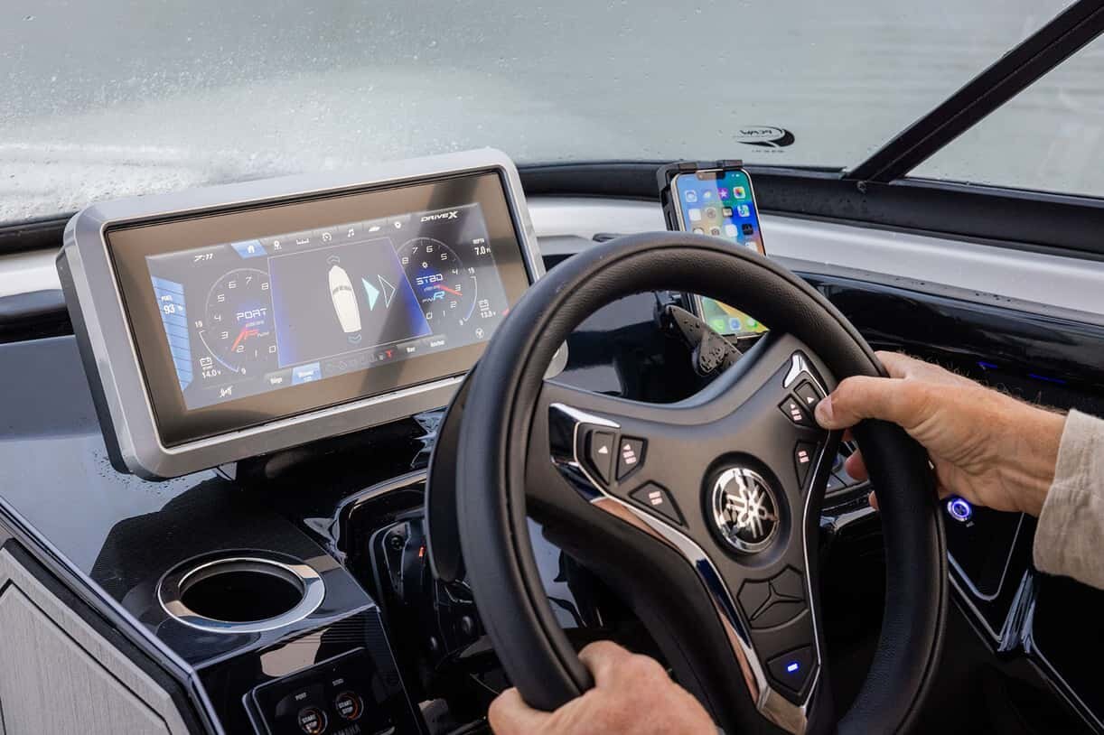 DRiVE®  X allows the operator to manoeuvre a 25-foot boat precisely around docks, launch ramps and other tight, congested spaces with confidence and ease by using actuating paddle controls on the steering wheel.