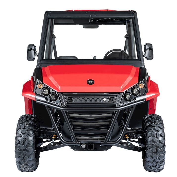 | With a built-in front windshield, standard wiper system, and rear window protection, it doesn't matter how wild the terrain. The Brahma is a wide-set beast that provides plenty of room for you to stretch out and stay comfortable, whether you are zipping across a job site, or navigating through untamed farmland. |
