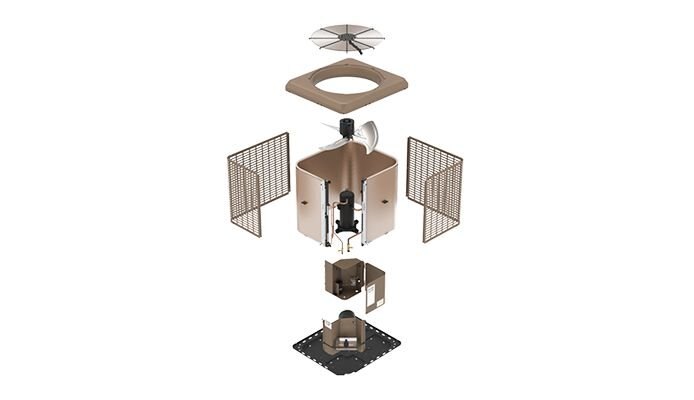Top Discharge - Warm air is blown up, away from the structure and any landscaping and allows compact location on multi-unit applications.