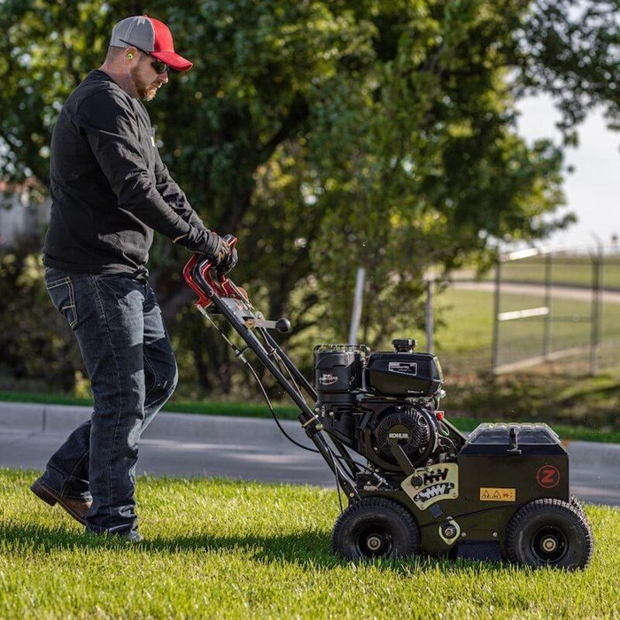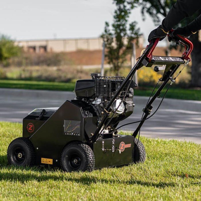 With its rugged, easy-to-use design and proven results, the Z-Seed walk-behind slicer seeder is the perfect slicer seeder for your business. It efficiently performs three jobs with each pass - verticutting, dethatching, and overseeding. A 9.5 HP* Kohler engine is backed by an infinitely variable hydrostatic drive with powered reverse, making it incredibly easy to operate. Travel up to 3.8 MPH on a 1.6-gallon fuel tank to efficiently knock out any job, large or small. The mixer regulates seed flow based on ground speed for consistent application, and a sizeable 40-pound seed hopper maximizes runtime between fill-ups. Built with quality and endurance in mind, the Z-Seed slicer seeder employs high-carbon steel blades that remove thatch, providing maximum seed-to-soil contact. Add in commercial-grade parts, and it all adds up to a slicer seeder that produces superior germination for a healthy lawn or field. Ready to tackle any job thrown its way, the Z-Seed walk-behind slicer seeder will instantly upgrade your lawn care regimen. |