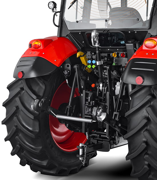 Proxima tractors are equipped with up to a four hydraulic quick couplers and electro-hydraulic control (EHR) for comfortable operation with implements. The efficiency of the hydraulics is based on the unique HitchTronic function that offers automatic regulation of the rear three-point hitch. The maximum lifting force of up to 42 kN copes with coupling of a large number of implements. |