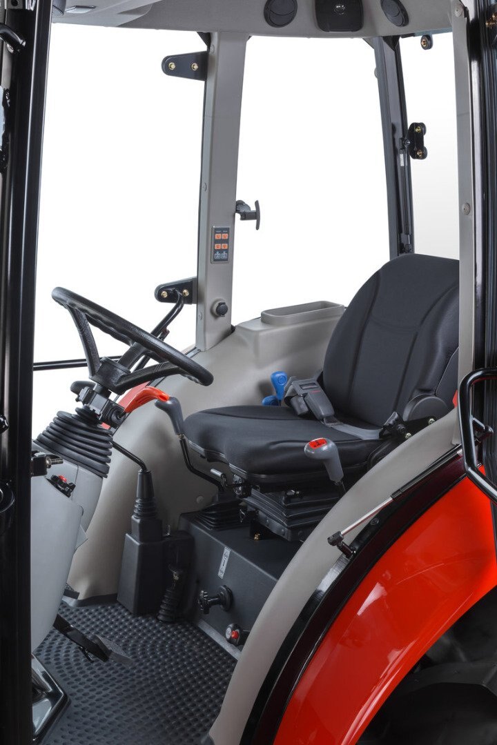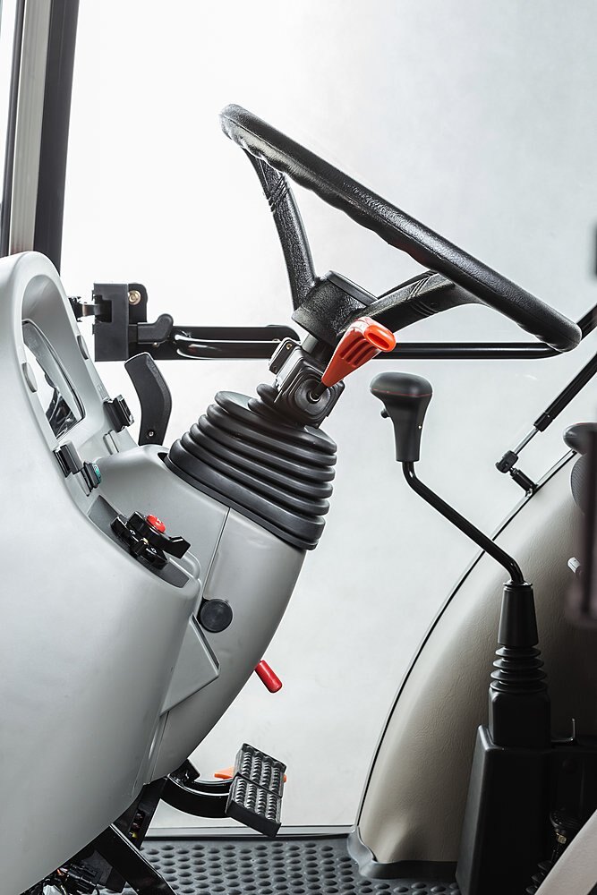 The cabin is both spacious and ergonomic with conveniently located levers, joysticks, and controls. The cabin is equipped with air condition. The digital instrument panel provides a clear display for reported signals, gas usage, as well as speed (rpm). The suspended seat keeps the operator vibrations to a minimum, while providing a comfortable and spacious seating area. Get the full functionality out of your front end loader with an easy to use, conveniently located joystick.