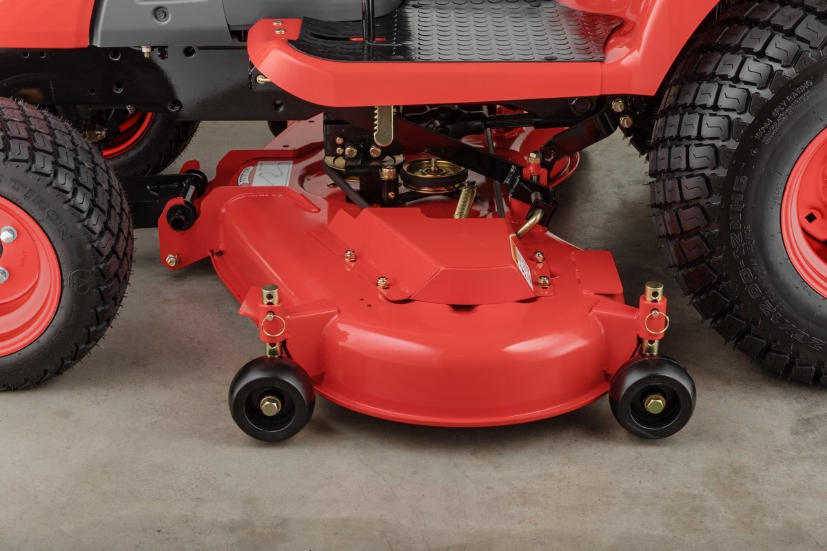 As a standard, the tractor mower is equipped with a robust 54” belly mower with 2-10 cm cutting height. The operation and mowing is simple and efficient even in hard conditions.
