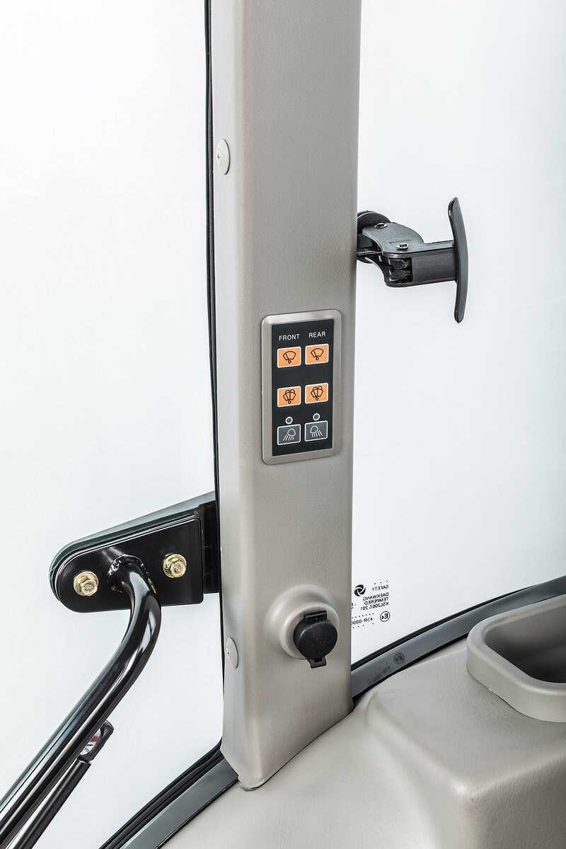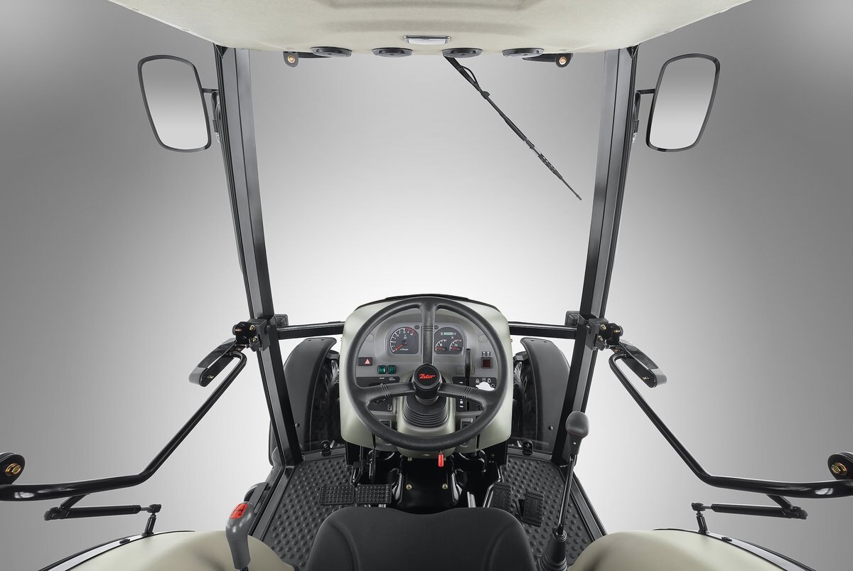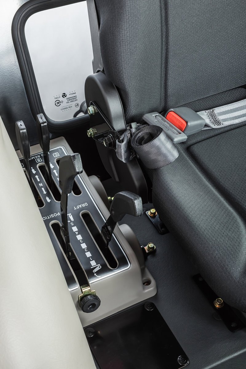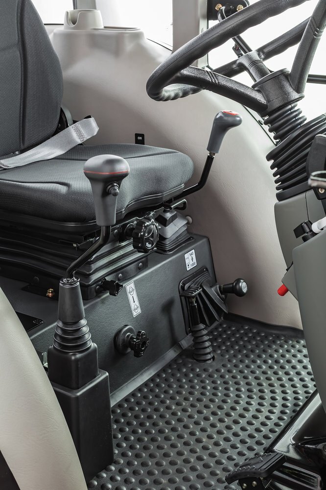 The cabin is both spacious and ergonomic with conveniently located levers, joystick, and controls. Cab is equipped with ergonomic and spacious operator seat and air condition.