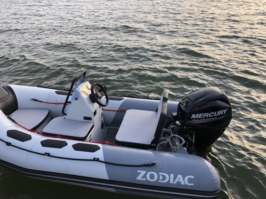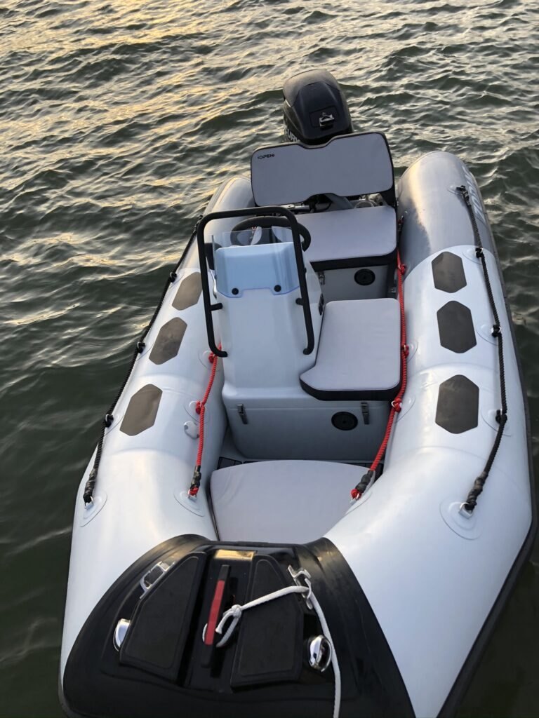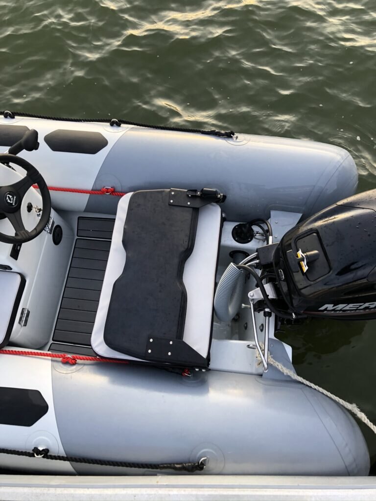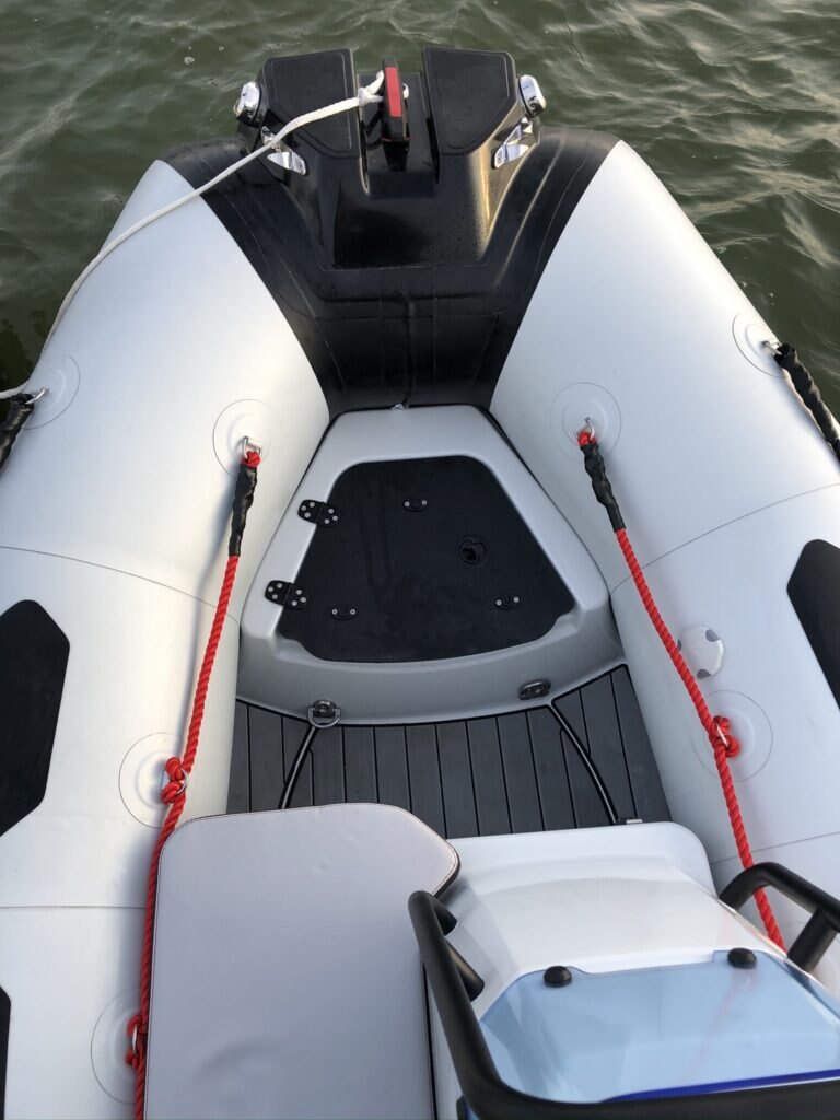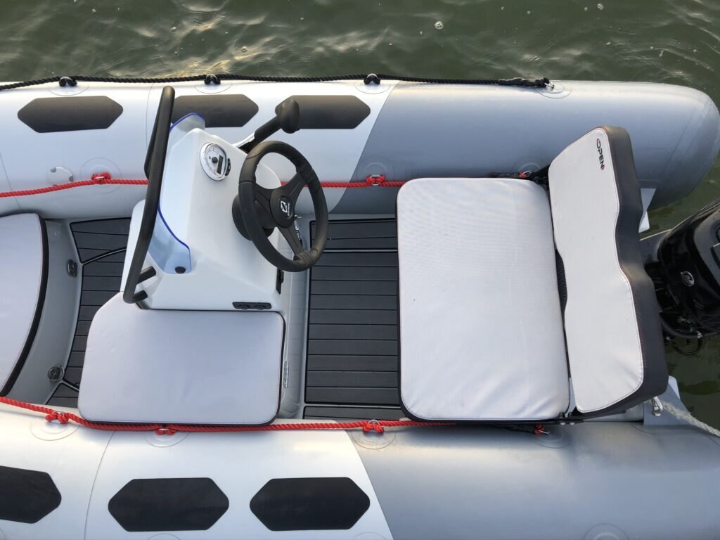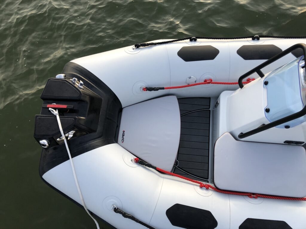 HULL & DECK :Bow Storage + Cushion, Fairleads, GRP Deep V-Hull, COMFORT :2 USB Plugs, Bench w/ Tilting Backrest, Bow Cushion, Side Seat, TUBE :1 GRP Bow Roller, 100 mm Rubstrake, Double Lashings, Easy Push valves, OTHER :Mechanical Steering, Navigation Lights, Repair Kit / Owner’s Manua |