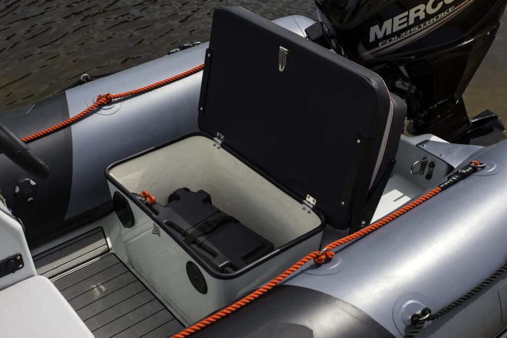 HULL & DECK :Bow Storage + Cushion, Fairleads, GRP Deep V-Hull, COMFORT :2 USB Plugs, Bench with Tilting Backrest, Bow Cushion, Side Seat, TUBE :1 GRP Bow Roller, 100 mm Rubstrake, Double Lashings, Easy Push valves, OTHER :Mechanical Steering, Navigation Lights, Repair Kit / Owner’s Manual. |
