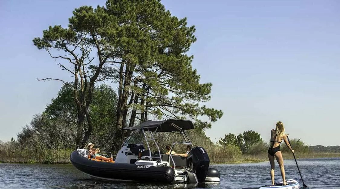 Engine Outboard , 1 engine Deck Open Deck , Bow Sundeck , Rear Lounge with 2 benchs , Open Sailing Program Touring & Leisure Boats , Water-skiing boats , Sport Boats , Wakeboard boats Materials Polyester/Fiberglass hull , Neoprene/Hypalon , Neoprene Carbon or PVC/Strongan tube
