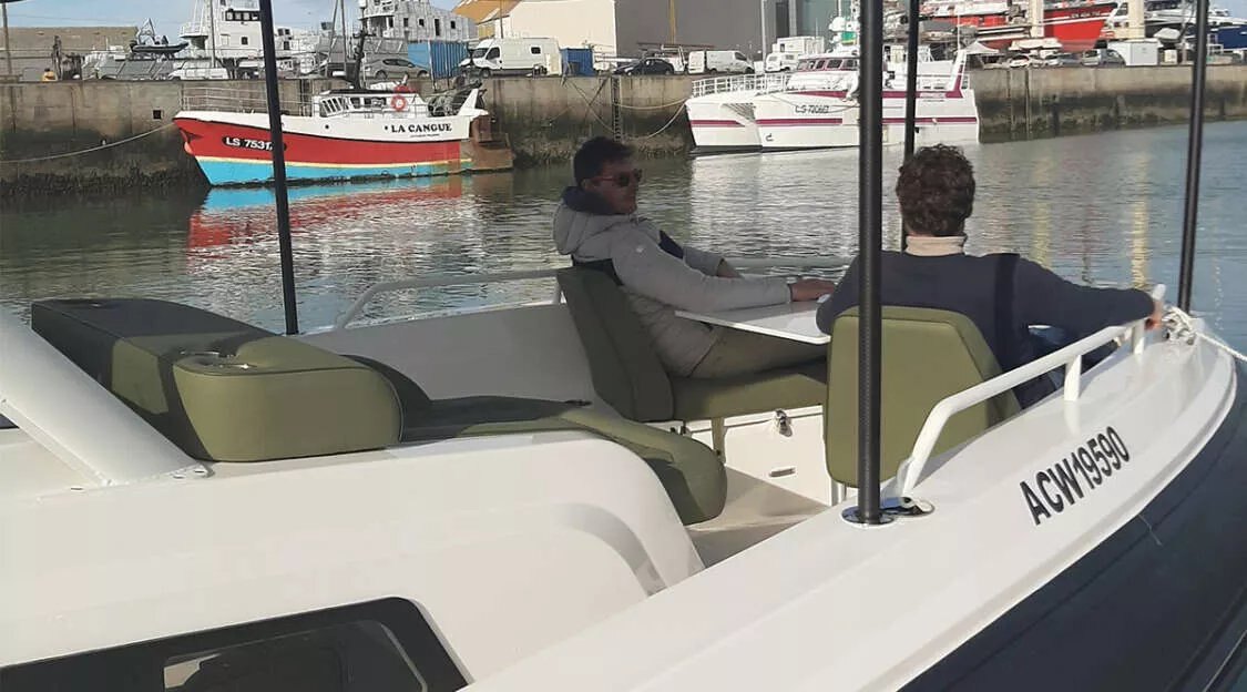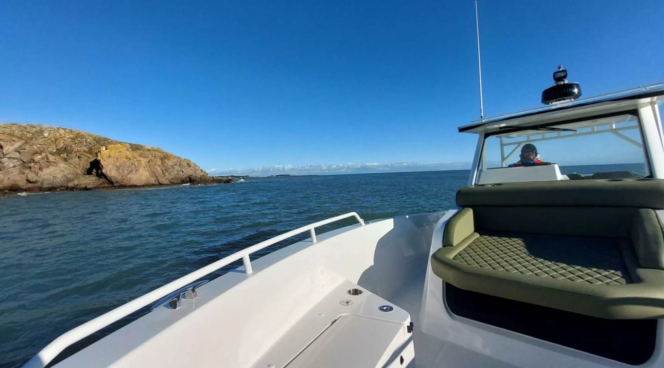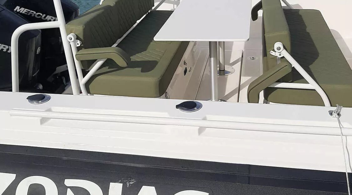 With a 2 x 400 HP Mercury engine, our tests have shown that it consumes just 3L / nautical mile. It can reach a top speed of 60 knots with 7 people on board. This weight/power ratio means it consumes 30% less fuel than a rigid boat of the same size. Its 760-liter fuel tank gives it a range of around 250 nautical miles.