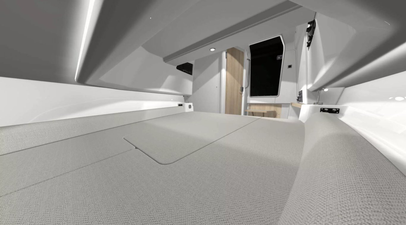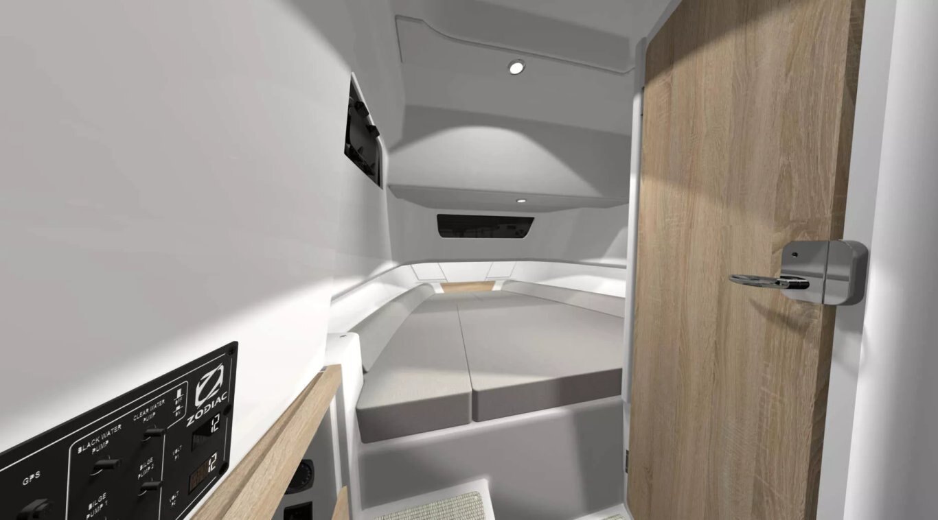 The largest boat ever built by Zodiac, the X10CC is THE boat for long, sunny days. Its generous deck space makes it easy to move around its equipment, whatever the number of passengers, which can be as many as 20. Its other assets? A double saloon that can be converted into a double sundeck, seating for between 10 and 13, a fully equipped kitchen, numerous easily accessible storage lockers and top-of-the-range features (folding seats, tinted portholes, topstitched upholstery, painted stainless steel, etc.). For those who don't want to go back to port, there's a cabin with a comfortable berth and bathroom...