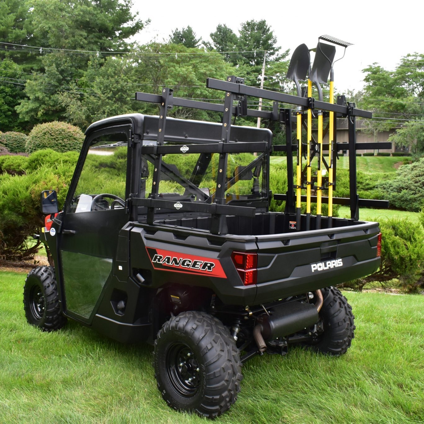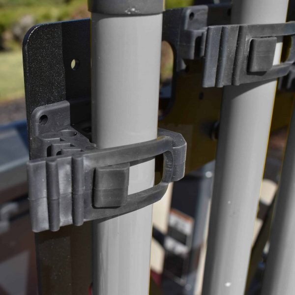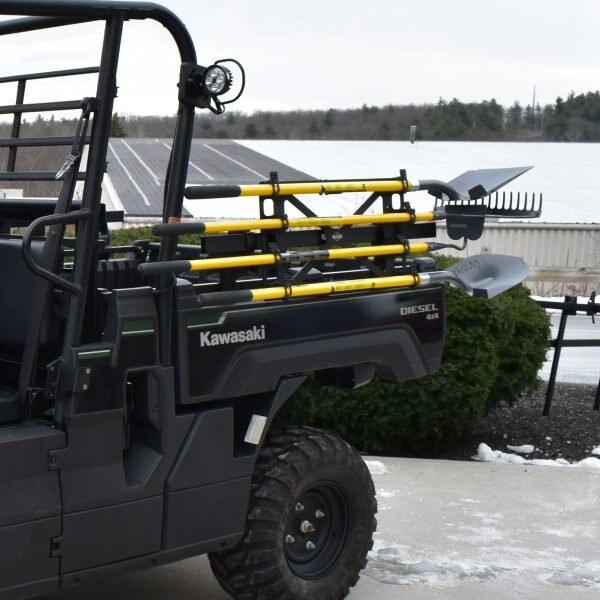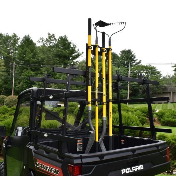 Artillian Elite Bar-Mount Tool Rack holds up to 4, long-handle tools. Mounts horizontally or vertically with cam latches. No tools required.