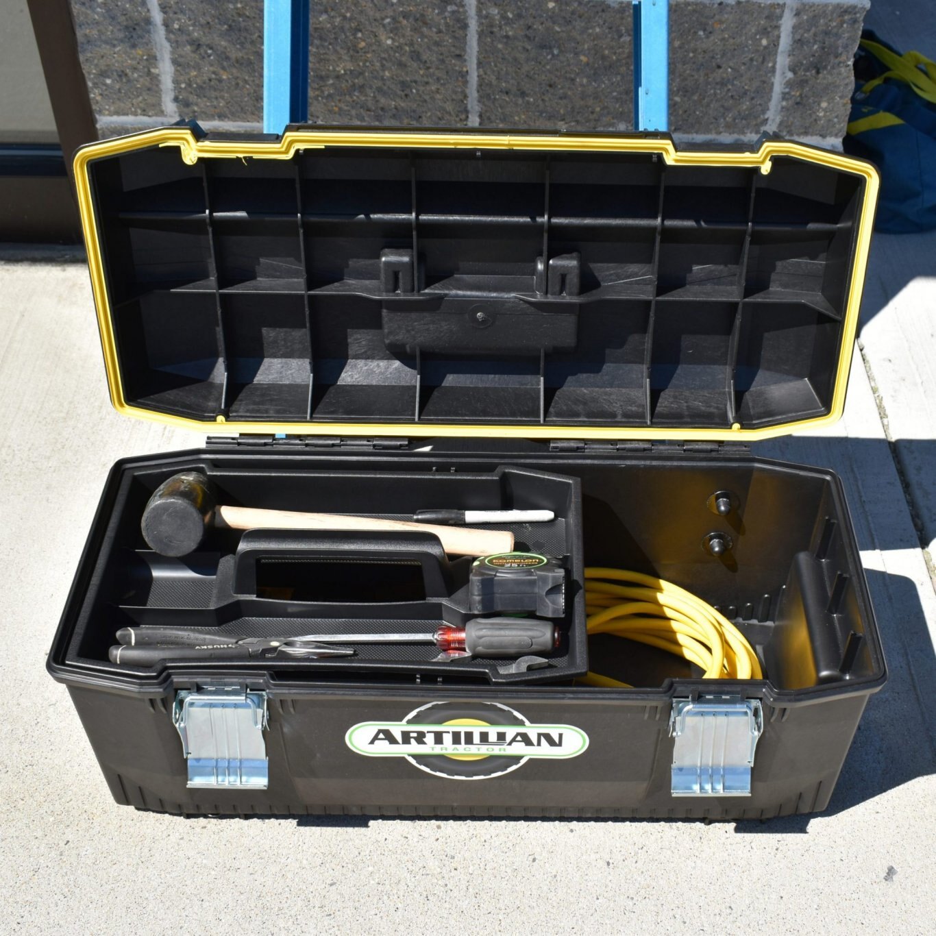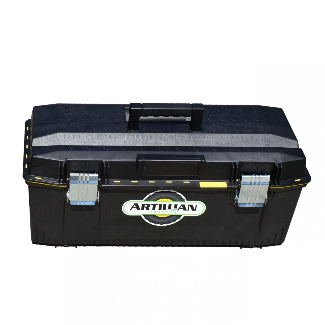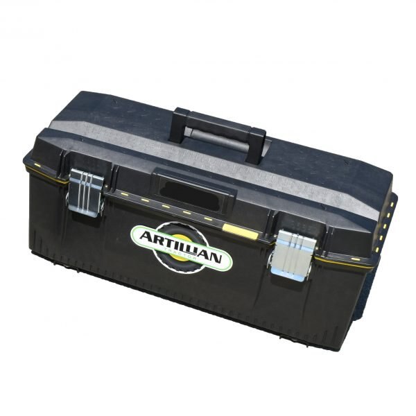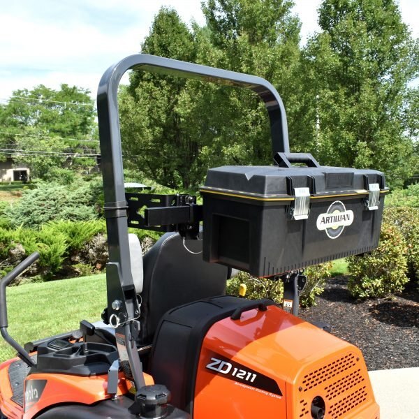 Artillian Elite Bar-Mount Tool Box storage container. Lifts off easily with quick-release cam latches. Includes internal tool tray. Water-tight seal.