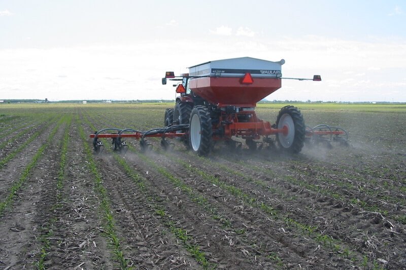 The ALR2304AM pneumatic applicator is an ALL IN ONE machine very versatile with high capacity. It can be fitted with a fertilizer boom. It can also be equipped with a tool bar for fertilizer application with disks or shanks. It can hook up units for Zone-Till, an air-drill, an 8 or 12 row planter and a band or boom spreader of 18 m (60’).