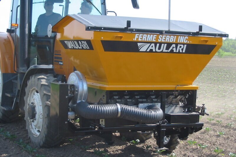 The ALR1500P pneumatic applicator can be added on a cart. With is 12 m (40’) air-boom, you’re going to have the best spreading pattern even on a windy day.