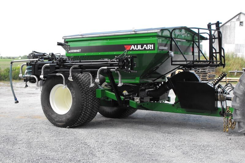 The ALR2004GT pneumatic applicator for dry fertilizer can blow fertilizer in the application boom with high accuracy over the entire working width of 18 m (40’).