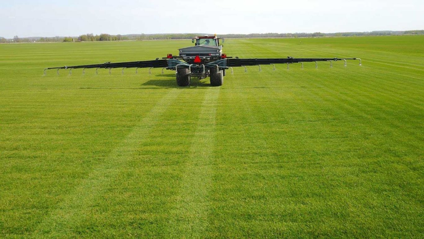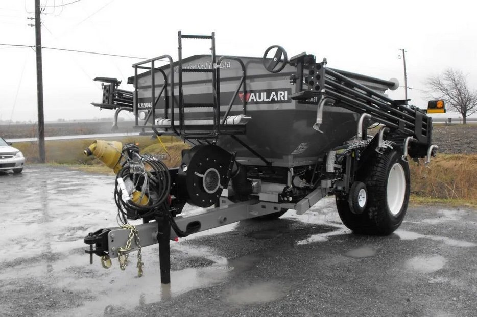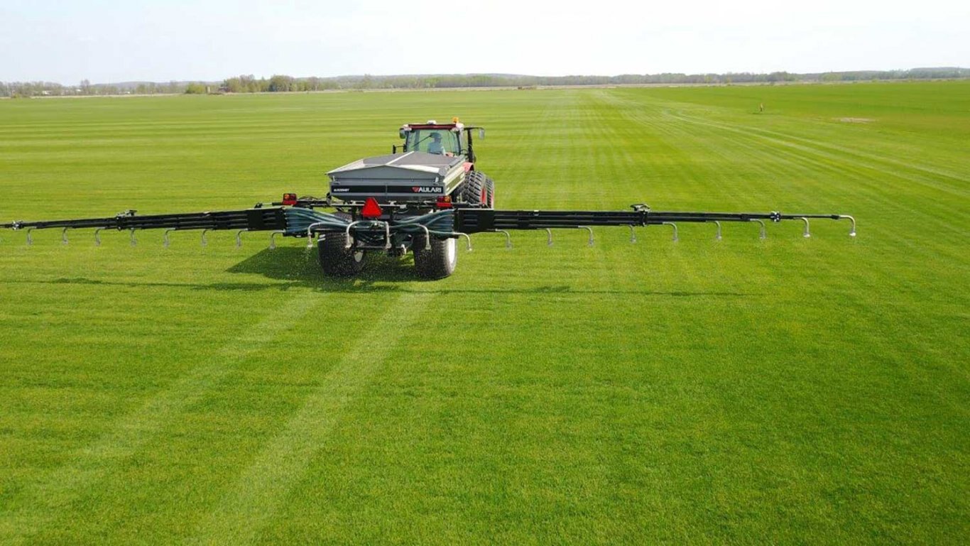 The ALR2004GT pneumatic applicator for dry fertilizer can blow fertilizer in the application boom with high accuracy over the entire working width of 18 m (40’).