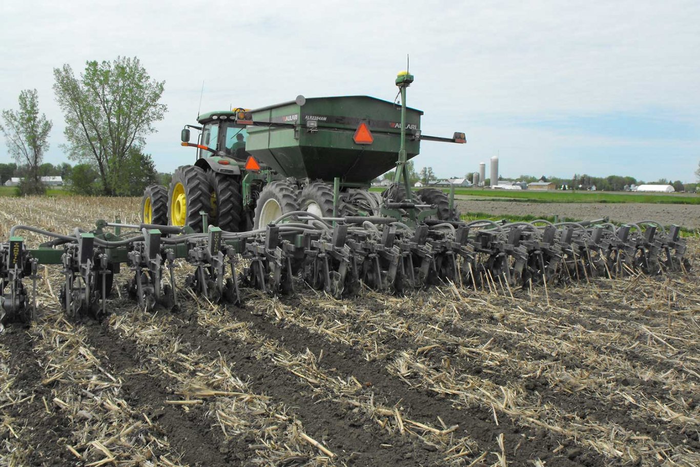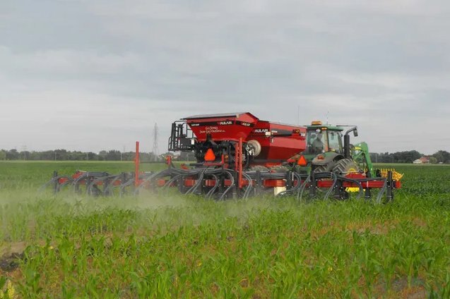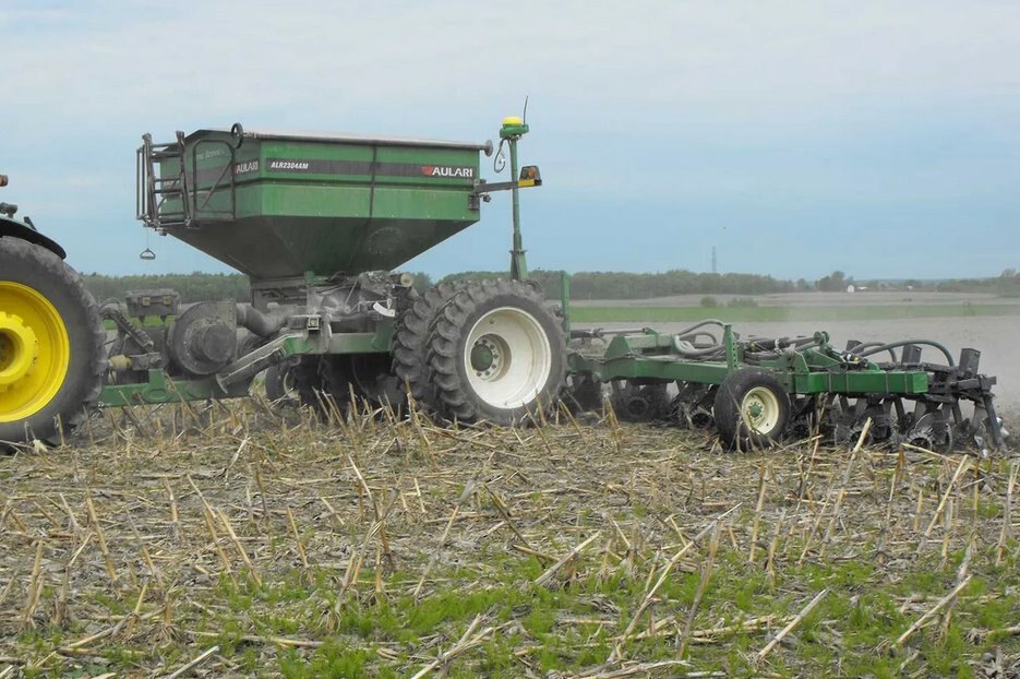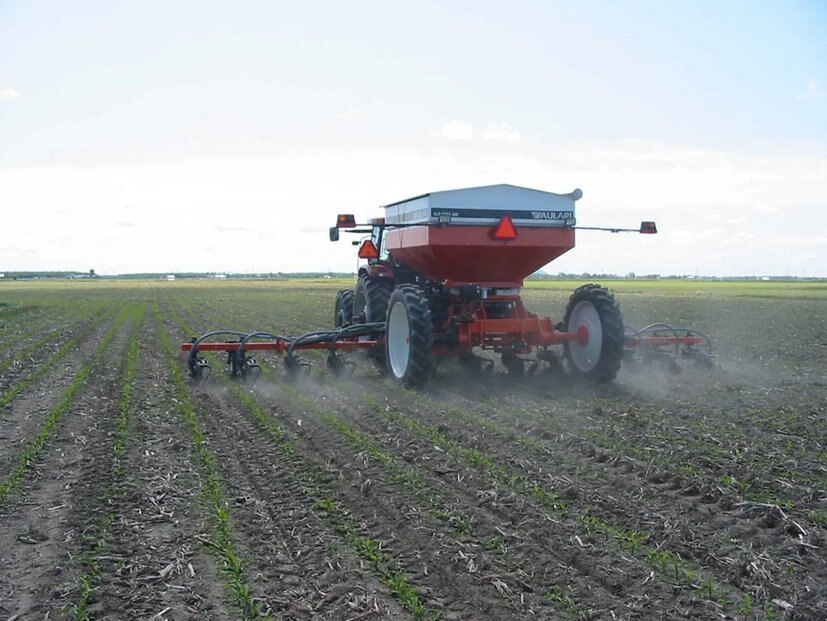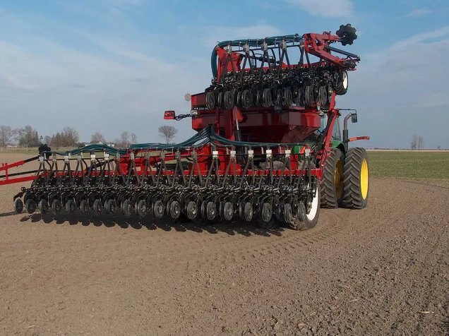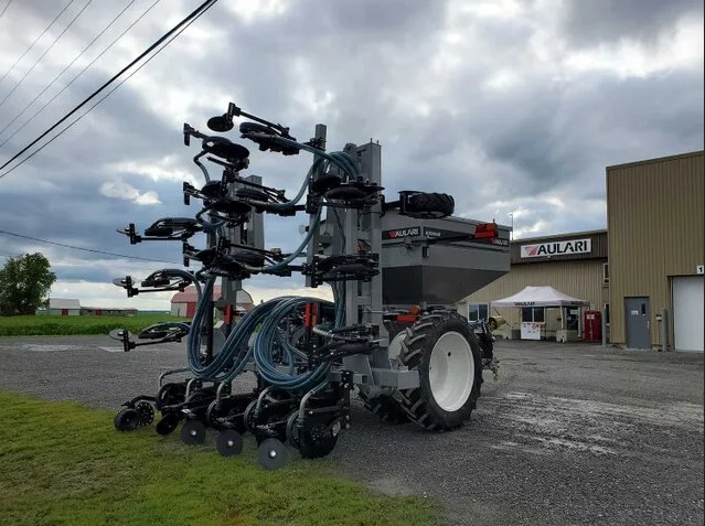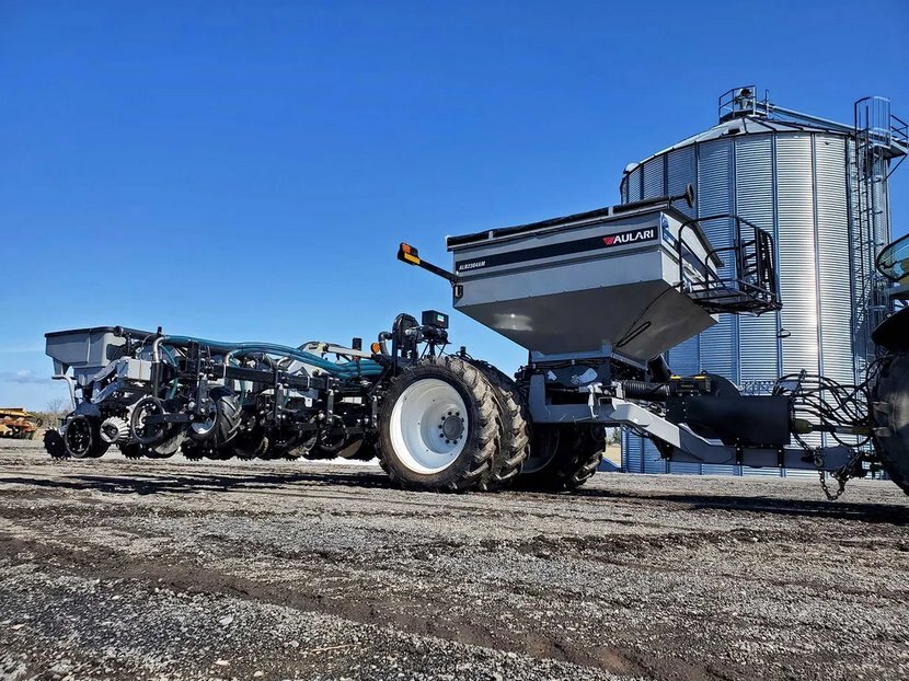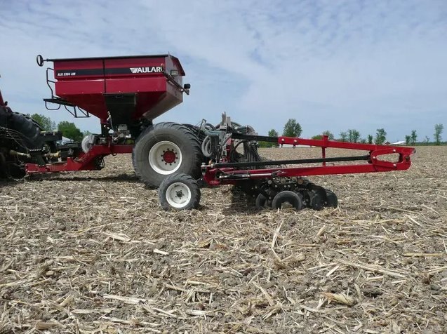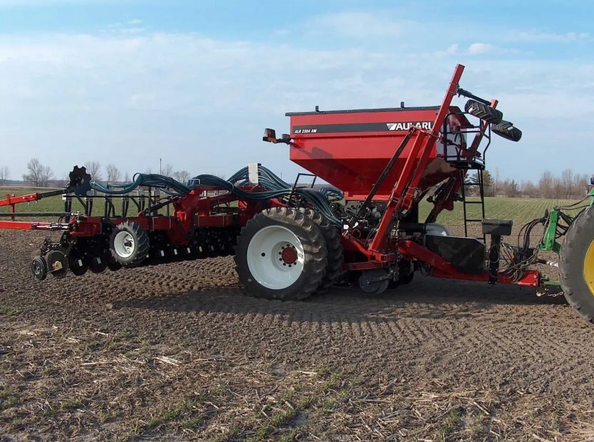 The ALR2304AM pneumatic applicator is an ALL IN ONE machine very versatile with high capacity. It can be equipped with a front tool bar for fertilizer application with disks. It can be combined with units for Zone-Till, an air-drill, an 8 or 12 row planter and boom spreader of 18 m (60’).