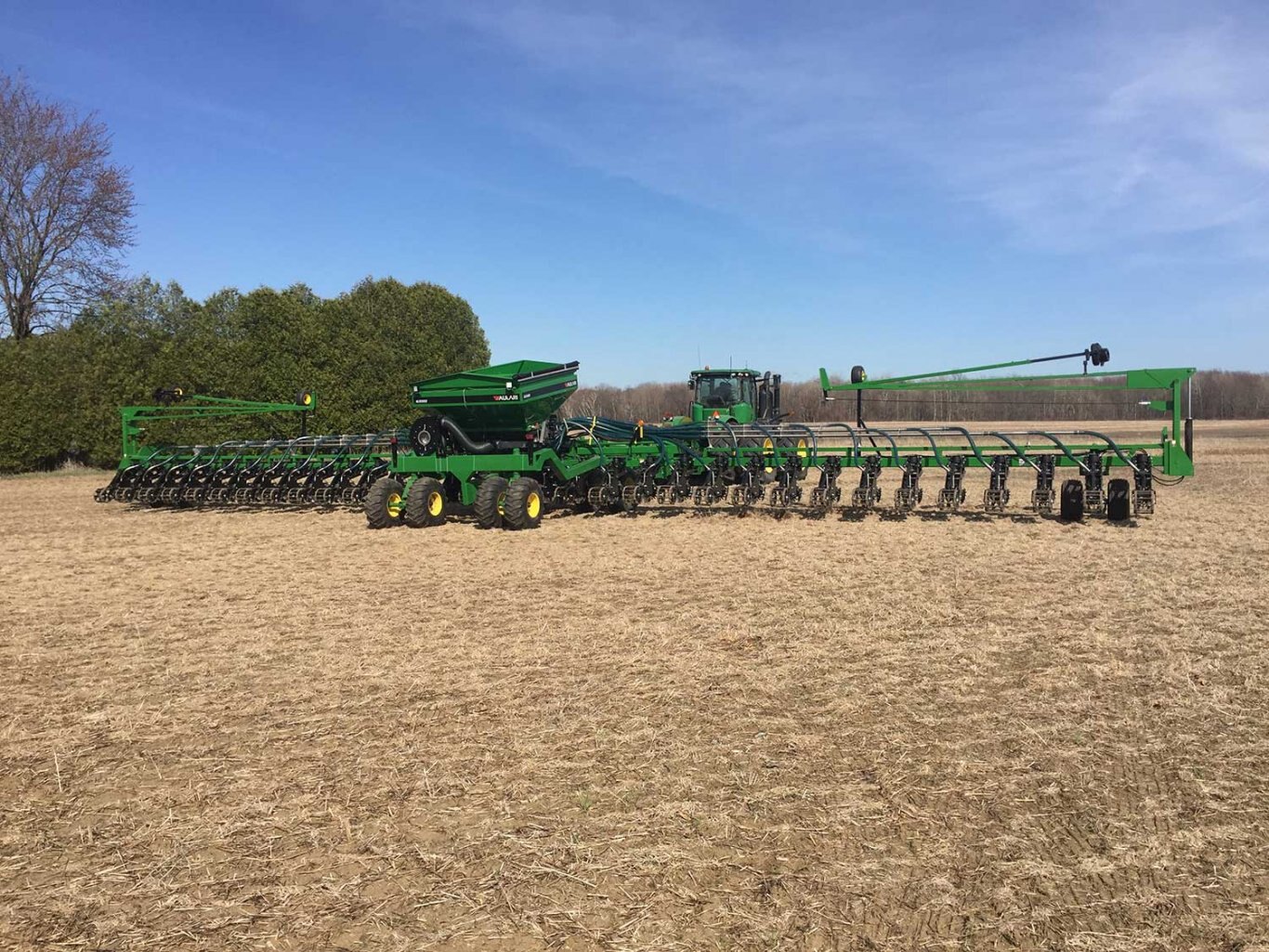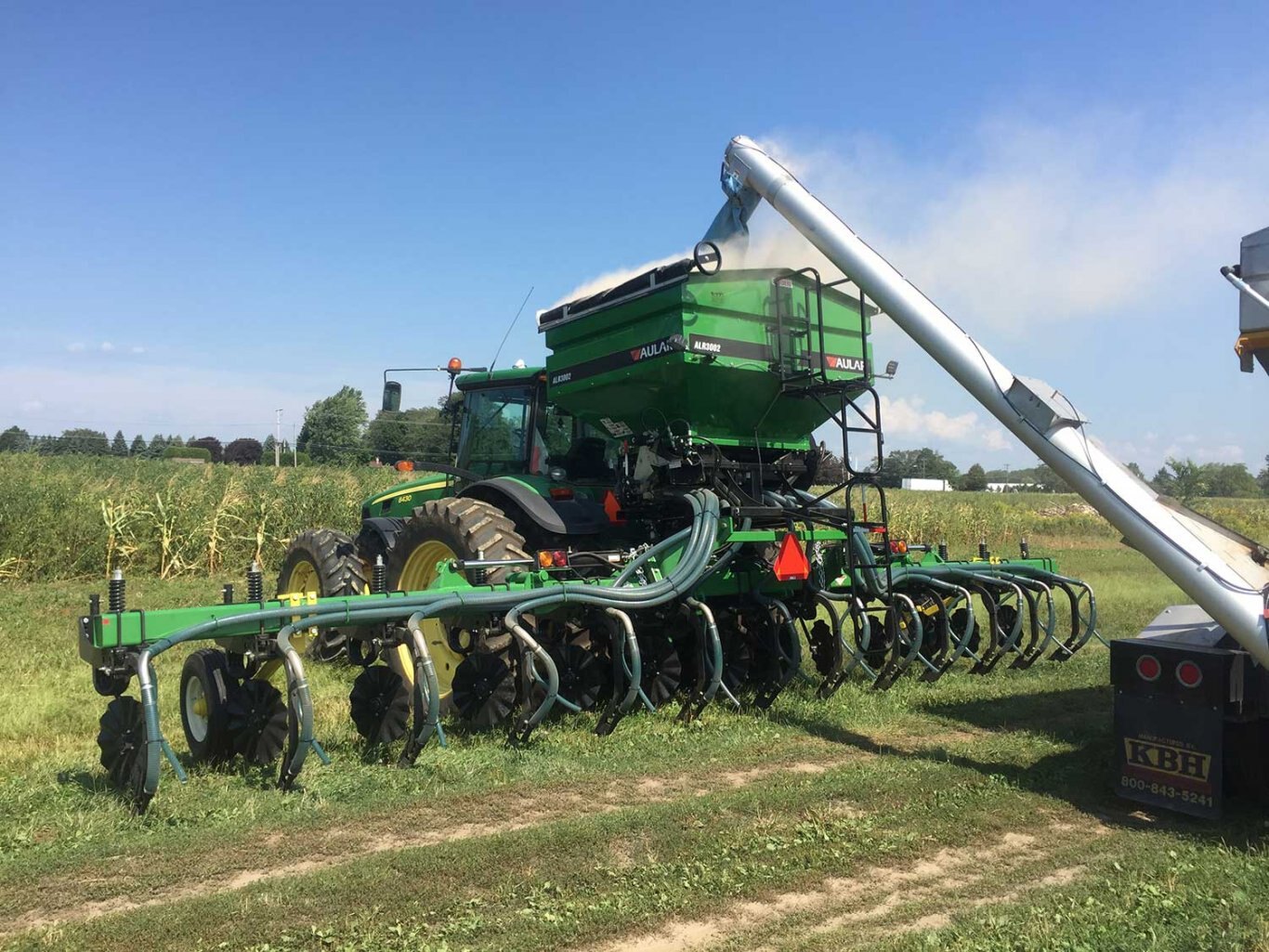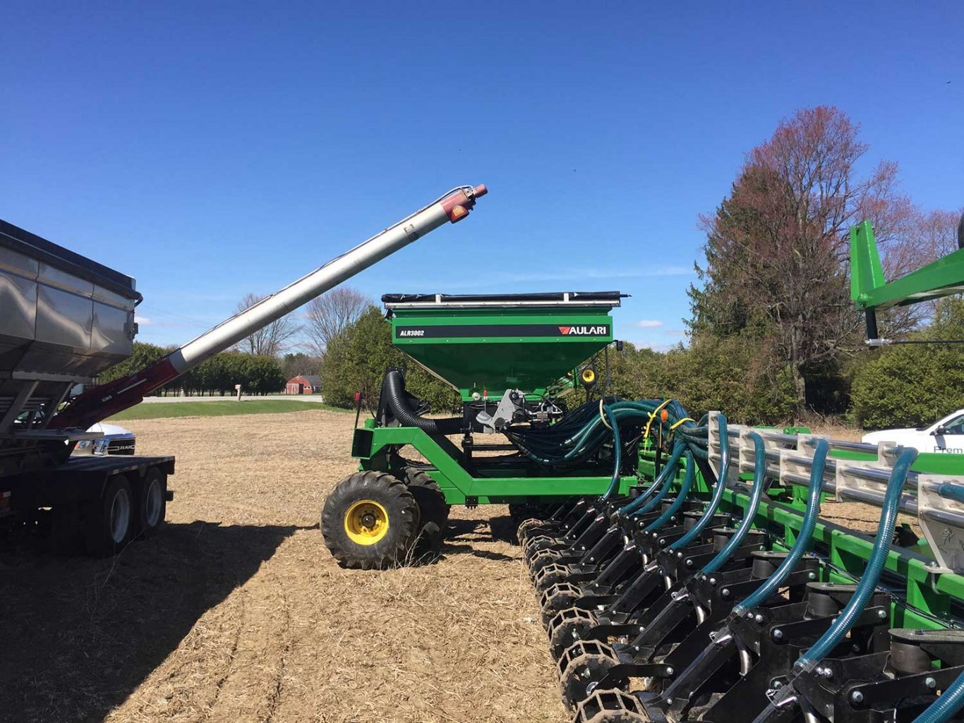 The ALR3002 pneumatic dry fertilizer or soybean seed applicator can be installed on 6, 8, 12, 16, 24, 32 or 36 row planters. Easier to back up then with a pulled behind cart and easier to do your head land too. You can always see your metering shaft