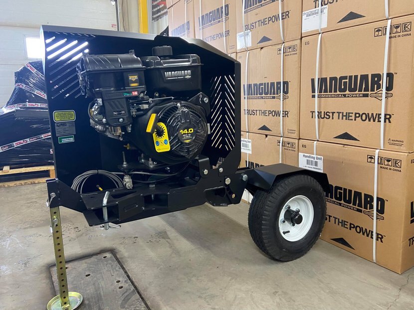 Rotor powered by a Vanguard 14hp gasoline engine with 3 year warranty, electric starter -