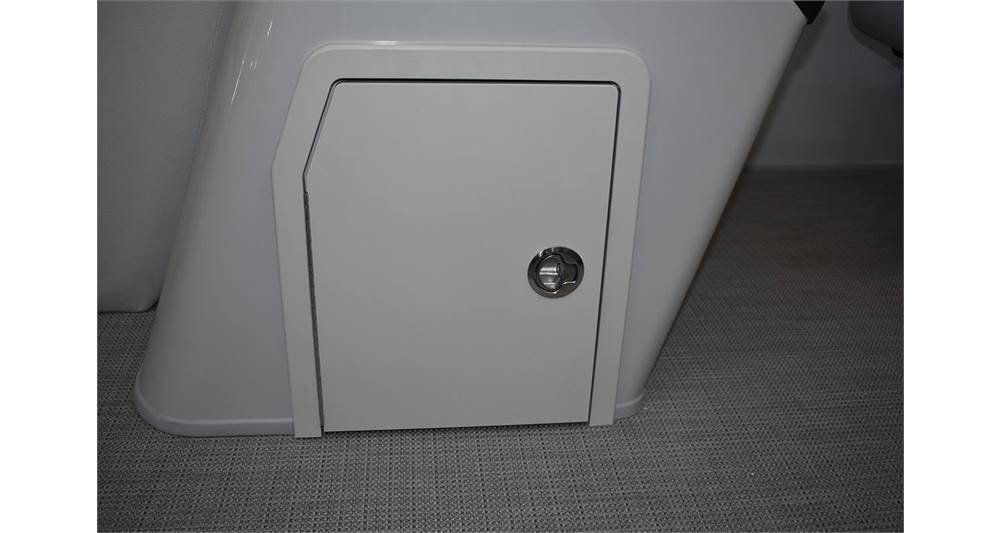 5-Year Bow to Stern Warranty (Limited) 3/4” - 7 Ply Marine Grade Plywood W/ Lifetime Warranty 25” Diameter Tubes W/ Lifetime Warranty (Workmanship) 5/8” Full Solid Keel All Welded Aluminum Transom w/Built-In Fuel Tank w/ Lifetime Warranty (Workmanship) .190 Hat Channel Crossmembers at Motor Mount Area Powder Coat Railing Custom Fiberglass Console OEM Analogue Gauges Speedometer, Tachometer, Voltage & Fuel Switchpanel W/ Easy Access Resettable Breakers 12 Volt Receptacle w/ Dual USB Charging Ports LED Navigation Lights & LED Docking Lights Sealed “Deutsch” Style Electrical Connectors Mechanical Tilt Steering 10’ Bimini w/ Quick Disconnect (Lil Bentley 9’) Rotocast Furniture Bases Integrated Cupholders Rear Entry W/ Ladder Built-in Livewell 44 Quart Built In Bench Seat Cooler Table W/ Cupholders Seagrass Flooring Bumper Guard W/ Rubber Insert Stereo System: Jenson JMS4 Standard Helm Seating: Bench Composite Built in Fuel Tank Size (Gallons): 32 # Speakers: 4 # Fishing Chairs: 2