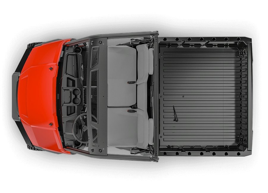 The Atlas JSV’s fabricated all-steel cargo bed won’t buckle or bend. Dump cargo with the touch of a button and haul a fully loaded pallet, thanks to a generous 18 cubic feet of cargo space.