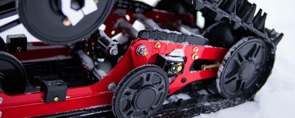 This 153" long Power Claw track uses 2.25" lugs in a 3.0 pitch configuration. The forward-curved-edge lugs are beneficial when the powder is heavier, and helps to keep things hooked up when pulling a heavy load or breaking trail. The 153" length coupled with the articulated skid-frame gets it done regardless of the task at hand.