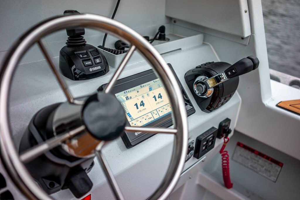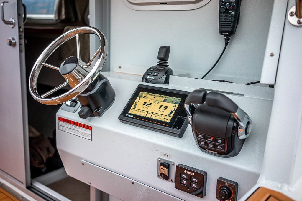 Standard Electric Features12V power point & dual USB outlet Marine wire harness with water tight connections 3 electric 1000 gph auto bilge pumps & high water bilge alarm Navigation lights package Interior LED cabin & v-berth lighting Twin engine battery management system with remote panel Trim tabs with dash indicators Dual compact electric horn Carbon monoxide detector |