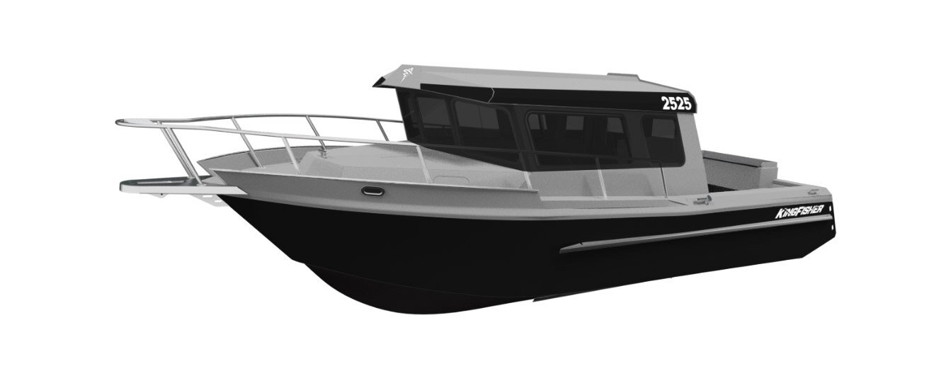 Standard Hull FeaturesExclusive Pre-Flex® hull technology Full length performance delta keel Engineered full length reverse chines Performance lifting strakes Formed compound angle full length box stringers Fully welded bow stem & heavy duty keel guard for 7/16" total keel thickness Single piece hull sides with wide formed gunnels Fully welded external rub rails / hull stiffeners Closed cell polyurethane foam below cabin deck Anchor rope locker; self draining with interior access hatch Watertight cabin bulkhead with heavy duty weather-tight cabin door Forward sloping windshield with 3 aluminum framed safety glass windows Aluminum framed side slider windows with screens & aft bulkhead windows 3 heavy duty pantographic windshield wipers Raised self-bailing cockpit deck Fish locker in cockpit floor with commercial diaphragm pump out Raised transom fish locker with cutting board and fish rail Hinged doors for easy access to bilge compartment Aft cockpit side storage trays and aluminum cockpit toe rail Transom access door Full width integrated offshore motor bracket Welded bow eye with stainless sleeve and 2 welded aluminum stern eyes 7 x 9" heavy duty welded bow and stern cleats Hydraulic steering with center mount cylinder Stainless steel 1-1/4" offshore bow rail Foul weather bow coamings with hawse rings Bolt on sacrificial hull anodes Stainless below water line thru-hull fittings with welded reinforcements Speckle painted gunnels, cabin walls & interior Exterior full side paint color choice |