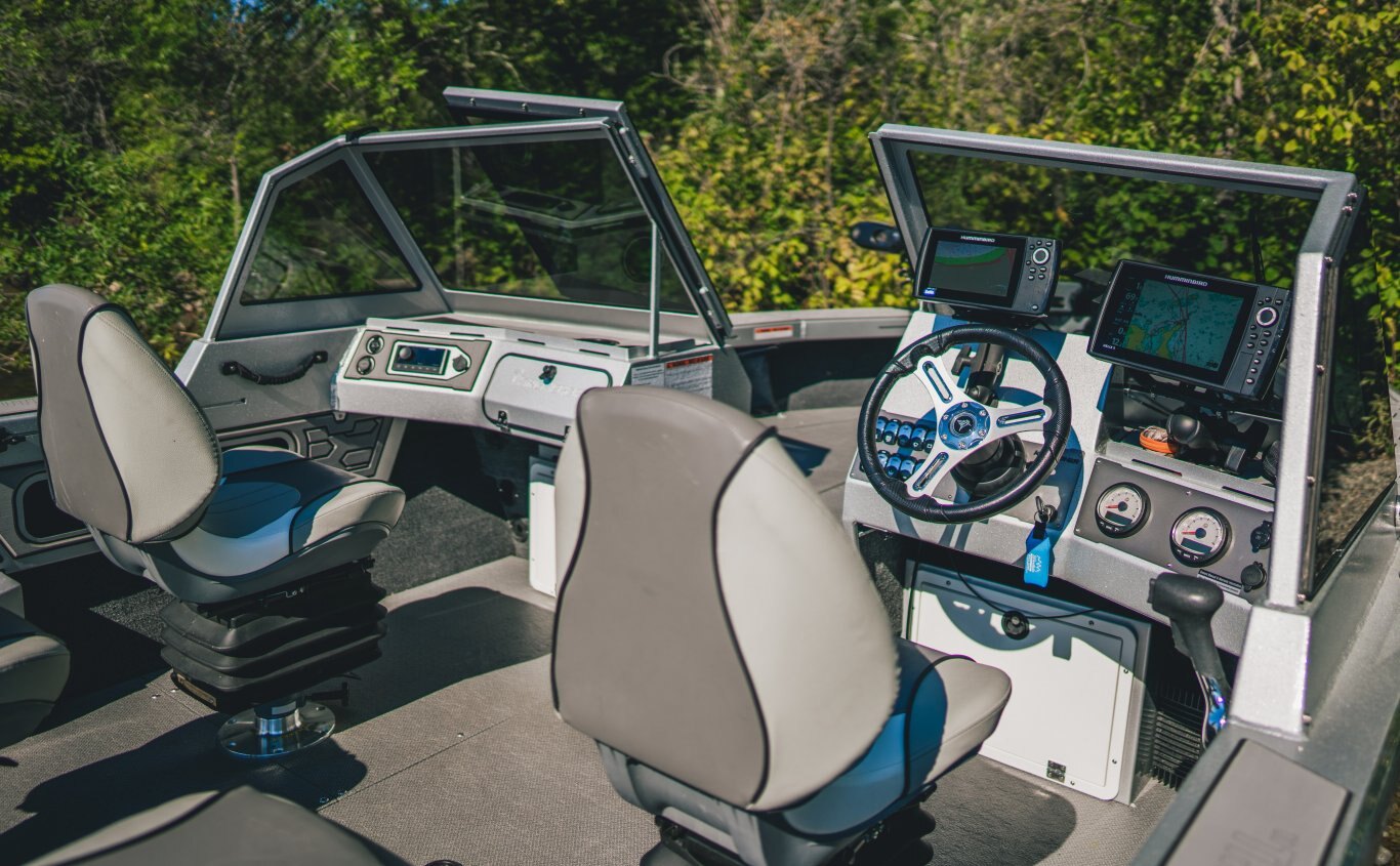 Standard Hull FeaturesExclusive Pre-Flex® hull technology Full length performance delta keel Engineered full length reverse chines Performance lifting strakes 1" solid stock bow keel guard and center keel Rigid full length compound angle box stringers Welded bow stem Closed cell polyurethane foam below deck Welded 5-piece bonded windshield with tempered tinted glass windows Welded aluminum glove box compartment with lock 4 folding stainless deck cleats Welded aluminum bow and stern eyes 2 welded XL transducer brackets Speckle painted windshield & bow/aft gunnels Exterior full side paint color choice Painted rub rail extrusion EZ Loader 4700 lb factory matched silver/black powder coated tandem axle bunk trailer with hydraulic disc brakes & custom tie down straps |