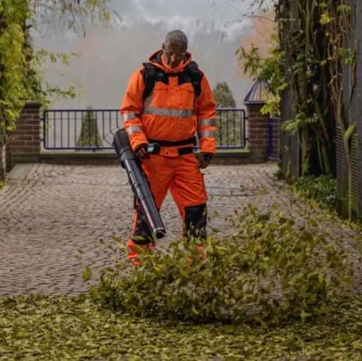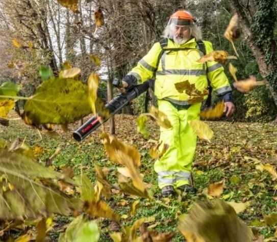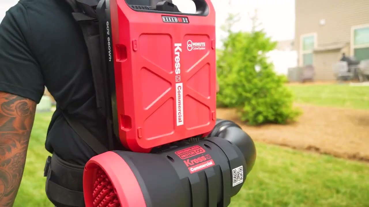 The only cordless commercial blower solution for professional use on the market. Extreme power and a very low sound level deliver the performance of gas without the noise. Thanks to the Kress silent technology, there is no issue disturbing customers & bystanders, or even having a conversation with a coworker. With a revolutionary battery and charging system, there are no concerns about being short on power for those landscapes that require extensive clean-up. An ergonomic backpack design that is adjustable and air permeable improves users' comfort and lessens fatigue. With an IPX4 waterproof design, superior power levels, and an elevated comfort level, the Kress commercial blower will address your landscaping needs no matter what the weather.