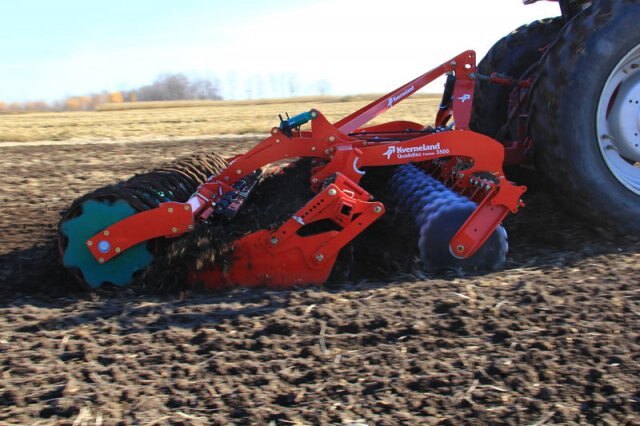 The Kverneland Qualidisc Farmer has been designed for operation up to 8cm working depth.Therefore, the Kverneland Farmer is 15% lighter than the current Qualidisc, thus easier to lift and ideal to reduce soil compaction. The Qualidisc Farmer is available in working widths from 3 to 4m, the folding version from 4 to 6m. The Qualidisc Farmer is equipped with a new disc arm ready to receive the heat-treated disc of 520x5mm (hardness 200kg/mm²) without any lateral moving during work for a constant cutting quality.
