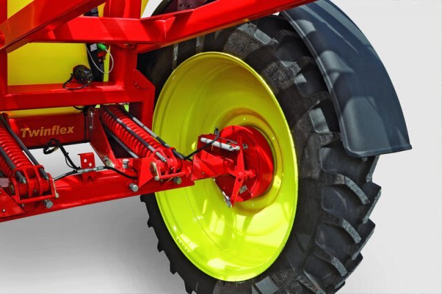• The drawbar suspension system with rubber shock absorbers is protecting the machine during high speed spraying and transport.