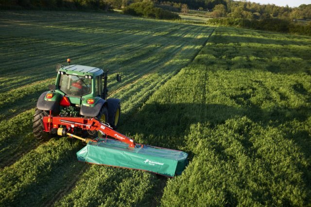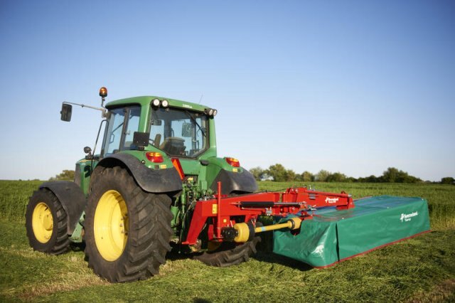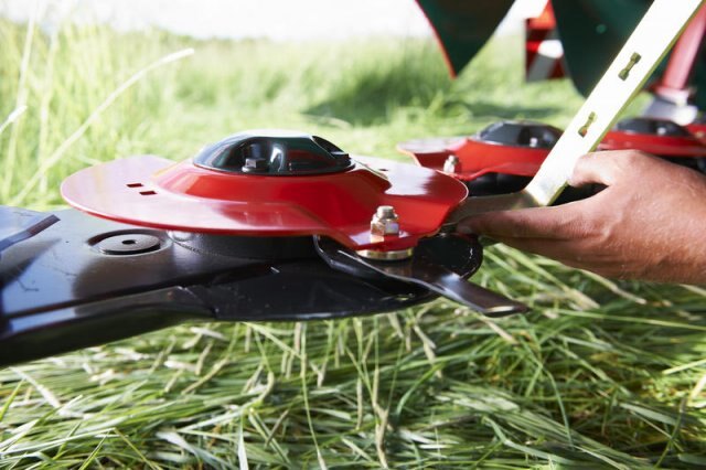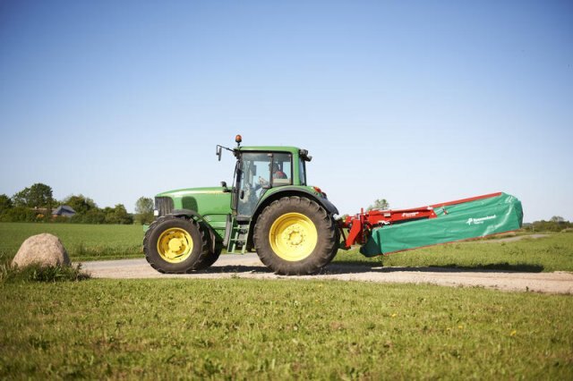 On headlands the mower is lifted without activating the three-point linkage of the tractor which needs no adjustment in the field. A clever and simple solution ensuring good clearance and eliminating swath damage.