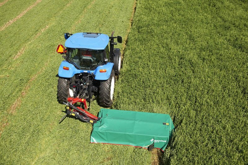 On headlands the mower is lifted without activating the three-point linkage of the tractor which needs no adjustment in the field. A clever and simple solution ensuring good clearance and eliminating swath damage.