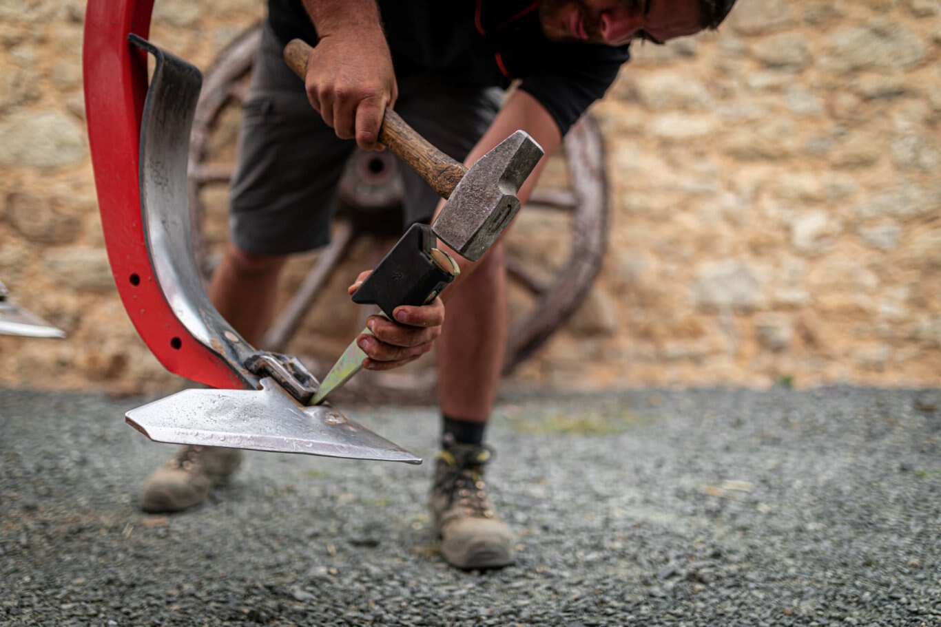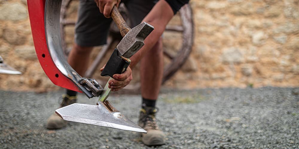 Kverneland always use steel of highest quality. Thus allowing the Knock-on system to be based on a simple locking technique: requesting only a hammer to knock on and off the parts within seconds.