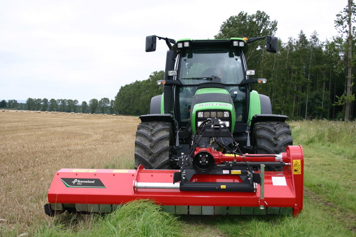 The Kverneland FRO is a new multipurpose chopper for chopping grass, pasture, set-aside land and stubble. A strong double headstock allows mounting the machine in front or behind the tractor. Together with the hydraulic offset it gives a multi-purpose versatility for nearly all conditions e.g. clearing out field edges, orchards road edges.