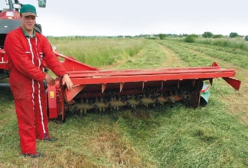 - An extra feature is the fact that the right belt can run in two directions, meaning that the Kverneland 5090 MT will place grass from 6 m into one swath.