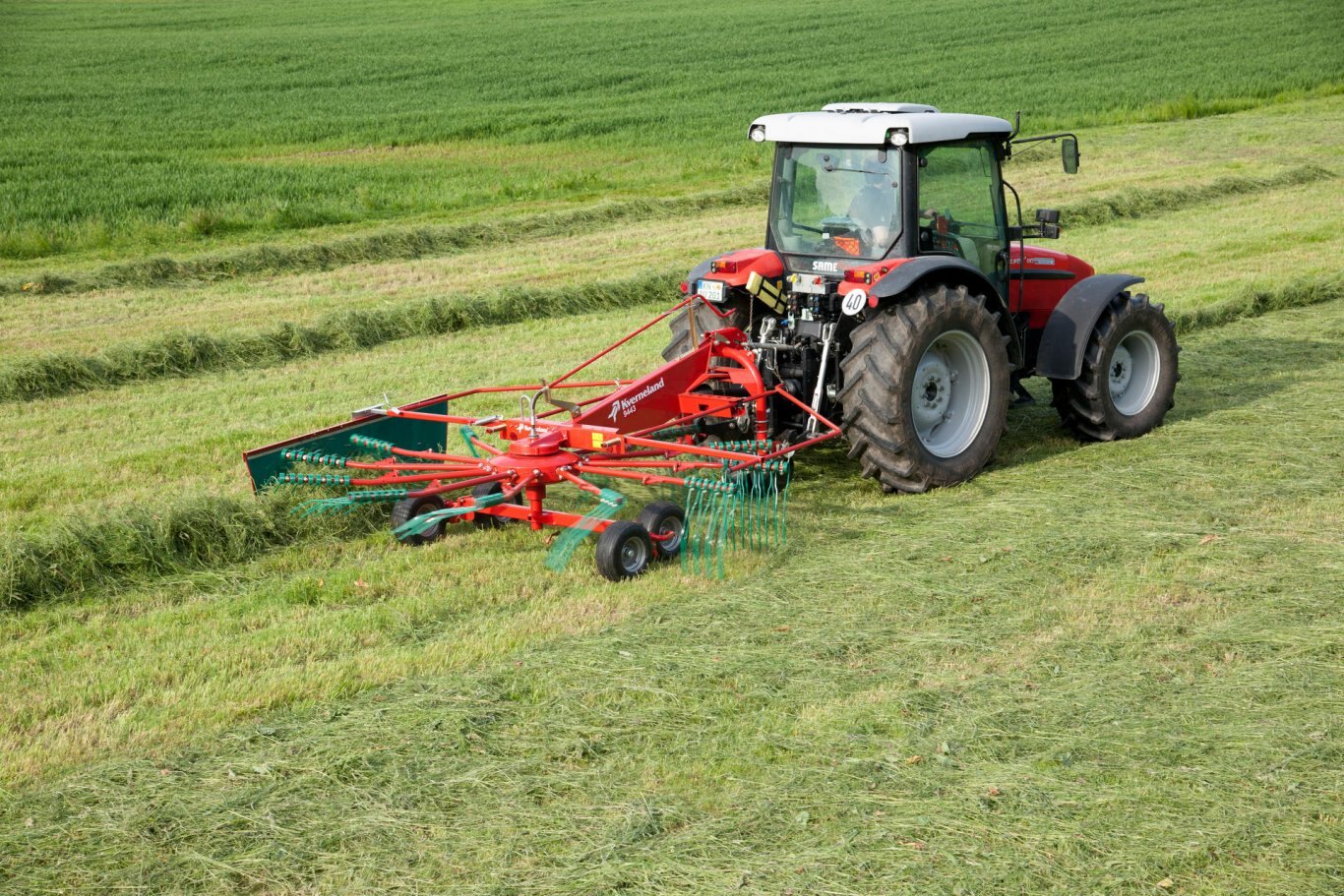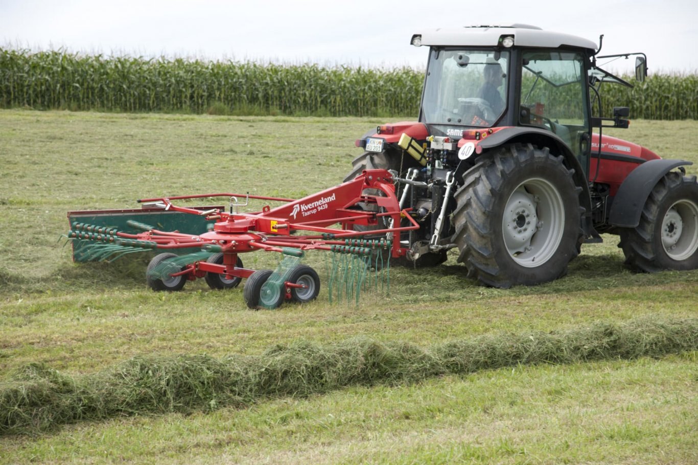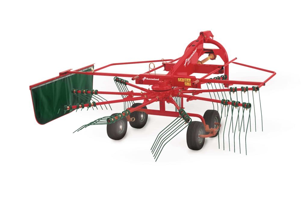 Kverneland offers several compact single rotor rakes, designed for use on low horsepower tractors, but which still deliver considerable working width. Kverneland single rotor rakes offer working widths of 3.20-4.70m. With the option of pivoting, fixed three-point linkage mounting and a trailed version, there is a model to suit all needs. All rakes (except 9442T) have mechanical height adjustment via a crank, with the possibility of adjusting to the individual field conditions.