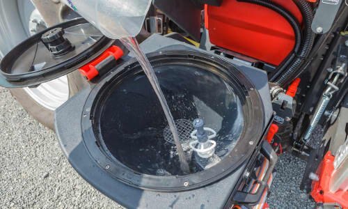 Easy to Fit, Simple to UnhitchThe iXtra front tank used the functions of the iXter B sprayer when filling and spraying. This avoids the need for a separate induction hopper or spray pump for the front tank. Without a front PTO shaft or hydraulic hoses, hitching and unhitching the iXtra is extremely simple: it uses only two hoses with KAMlock connections and an electric cable - it really is that simple! |